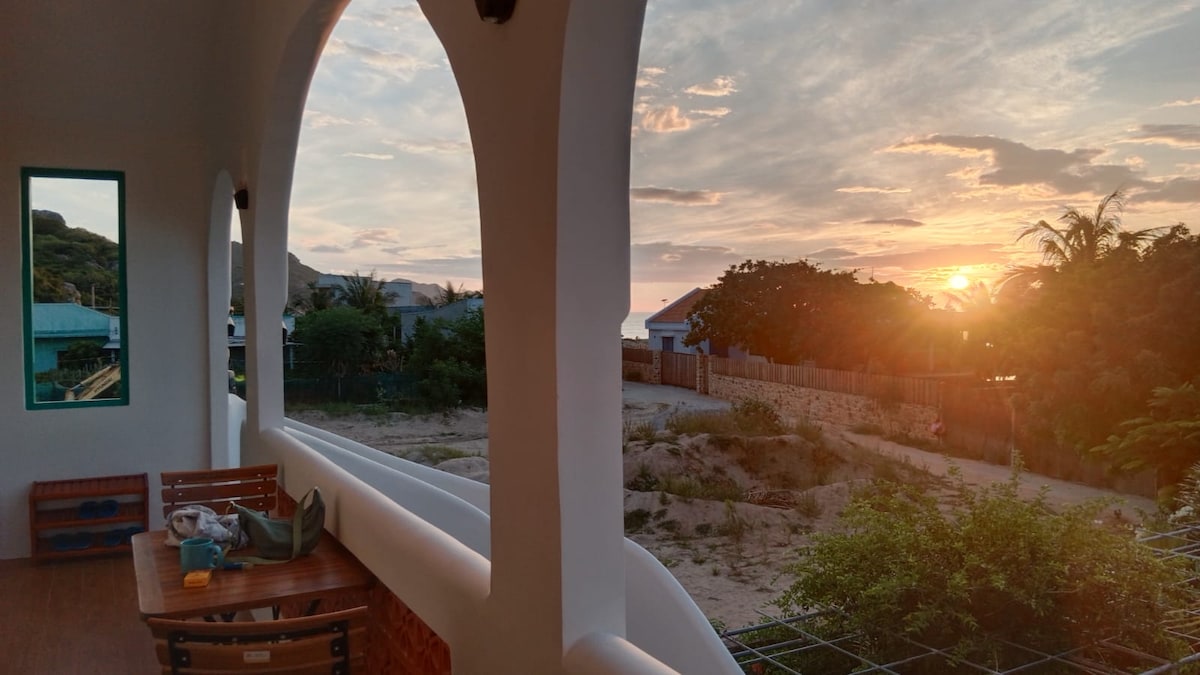 Una casa está diseñada en estilo moderno, situada a un paso del mar, ofrecemos 2 dormitorios modernos y 1 sala de estar. Y patio privado para organizar fiestas, barbacoa... Especialmente, la casa tiene una azotea increíble para una vista increíble e infinita al mar. Ubicado en el centro de My Hoa Lagoon, donde es un lugar perfecto de kitesurf para los jinetes de cualquier nivel. My Hoa, Ninh Thuan, Vietnam es un lugar de olas poco profundas, planas, picadas, pequeñas y medianas. Al alojarte aquí tendrás experiencias inolvidables.