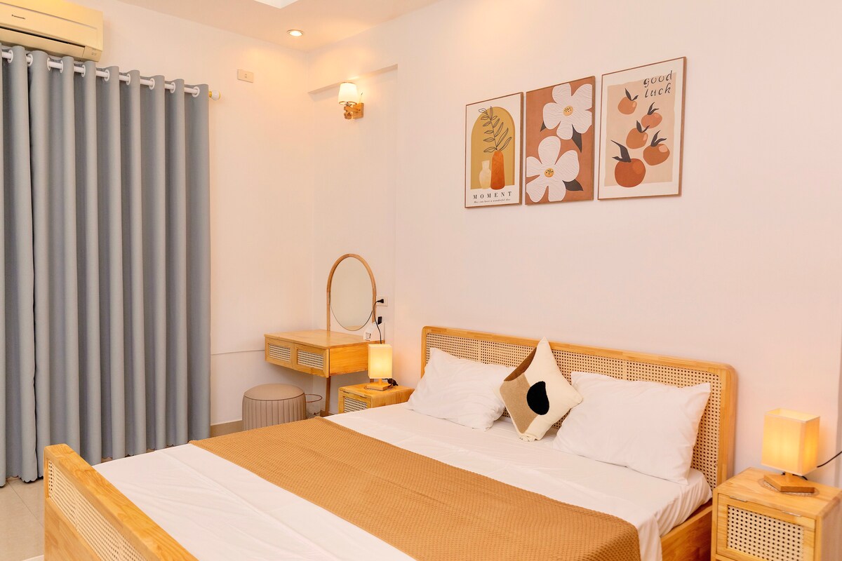 Este estudio totalmente climatizado en una casa de 4 pisos con un total de 5 habitaciones con capacidad para 6 personas con aire acondicionado tiene una cocina totalmente equipada y una lavandería en suite ubicada cerca de las principales atracciones. + 7-10 minutos en auto de la plaza de la ciudad antigua de Hoa Lu Gimnasio de gimnasia Ninh Khanh, Ninh Binh... + 20 minutos en auto hasta el comienzo de las atracciones turísticas que conectan Tam Coc Bich Dong, Trang An Hoa Lu, Dance Cave..... + muchos restaurantes locales y tiendas convenientes en el vecindario ** Servicio gratuito de entrega de equipaje y estacionamiento en el lugar disponible