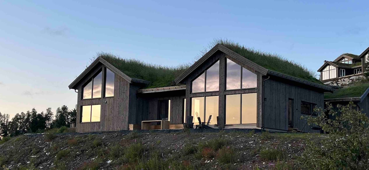 Moderne hytte med fantastisk utsikt og ski in/out