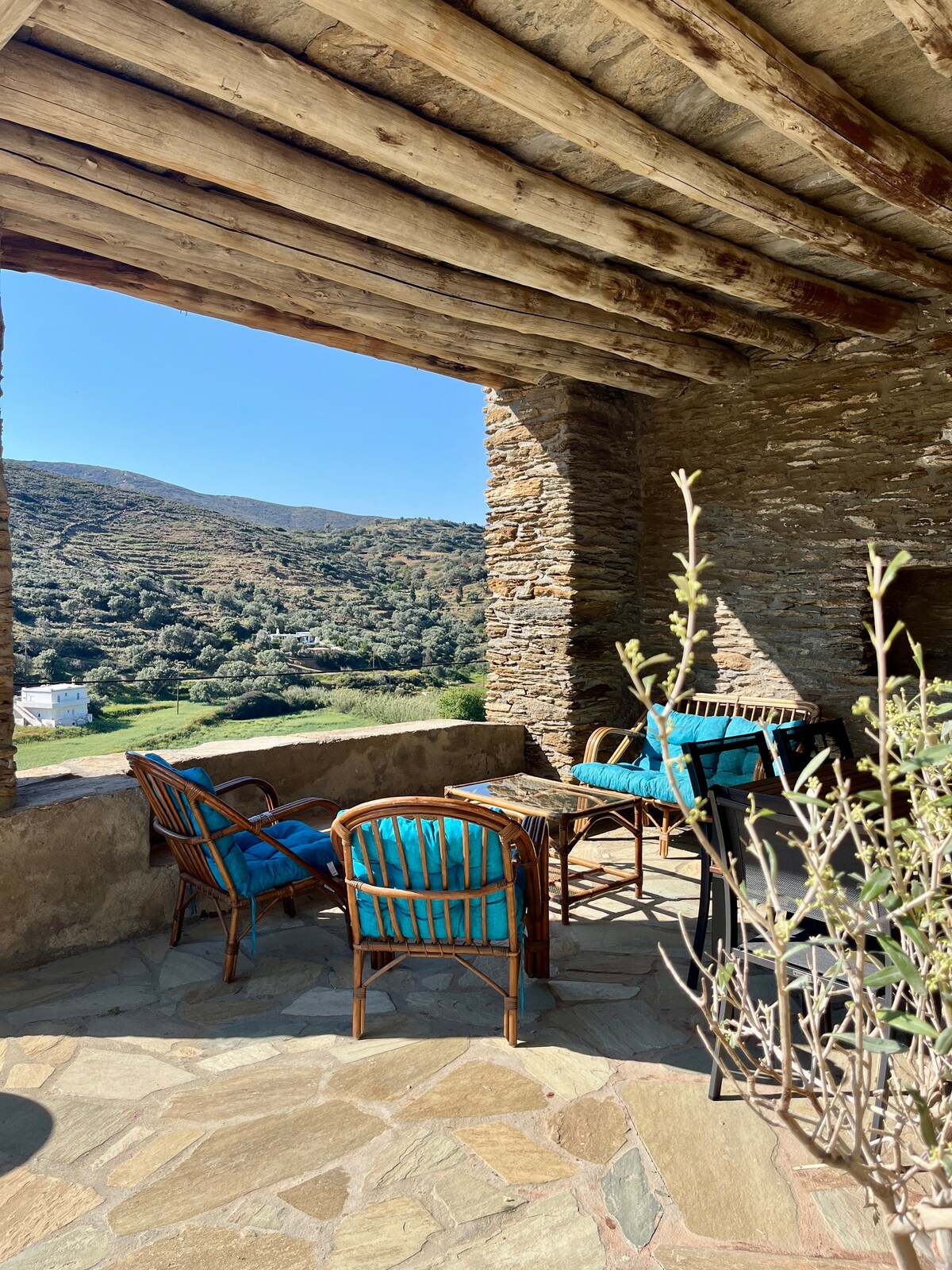 Da un paso atrás en el tiempo y alójate en esta casa de piedra única y hermosa, situada en una ladera empinada de la montaña, rodeada de bosques y terrazas, ideal para excursionistas y amantes de la naturaleza. Una gloriosa playa de arena con dos naufragios se encuentra a veinticinco minutos en coche. En invierno, la Casa de Piedra tiene una chimenea de leña, lo que la convierte en un alojamiento adecuado para vacaciones en todas las estaciones, especialmente vacaciones para caminar, ya que cada estación tiene su propio encanto especial. Cuatro paseos marcados comienzan desde el mismo Arni.
