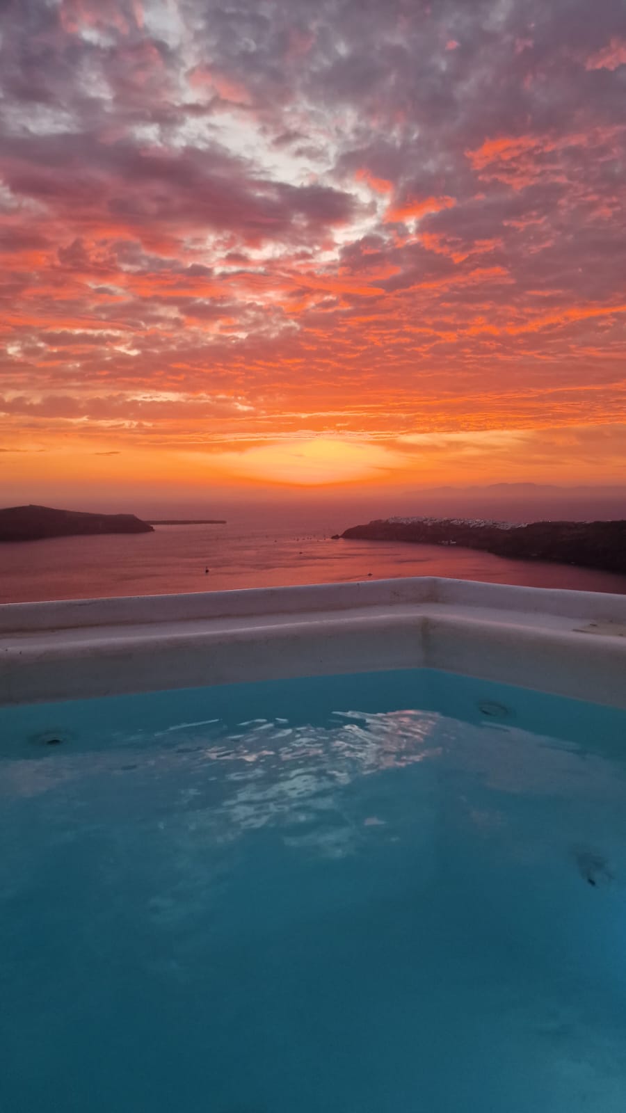 Ambeli Sunset Villa's unique allocation provides the famous sunset view of the caldera avoiding the overcrowding of the well-known cities of Santorini. A newly anti-seismic constructed building covering all the official guidelines to maximize the security of our guests. Depending on the chosen room type that fits you, guests will experience the use of the heated pool or the hot tub in maximum privacy as no facilities are public.