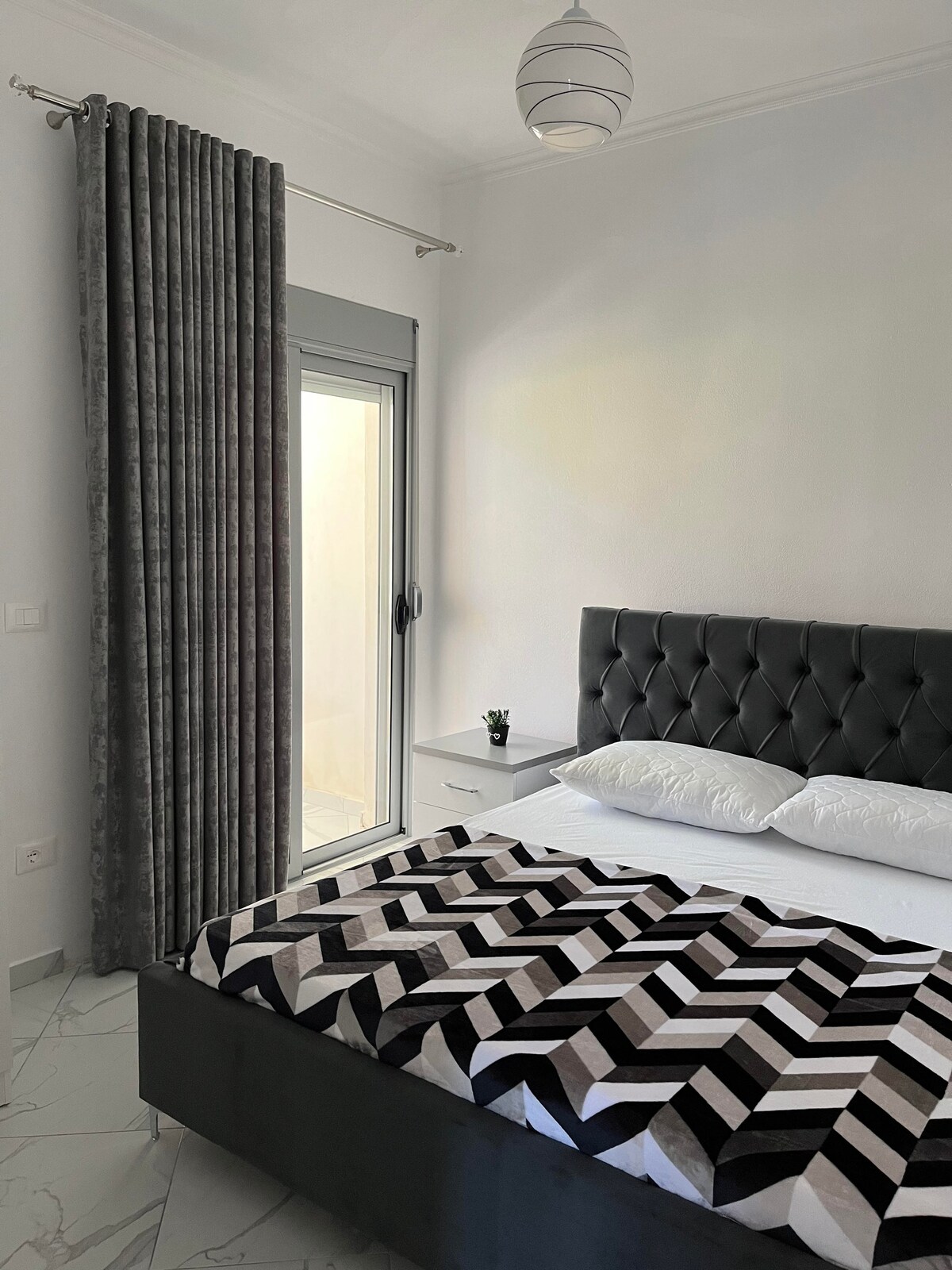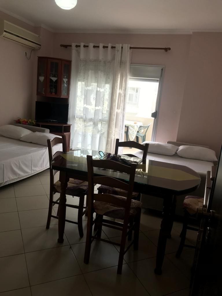 Relajate con toda la familia en este tranquilo lugar para quedarse, a solo 3 minutos a pie de Lungomare. Es el lugar perfecto para disfrutar de Vlora, pero también para descansar tranquilamente después de un largo día de playa. El departamento es nuevo y está totalmente equipado con todos los servicios básicos. En la sala de estar hay un televisor inteligente donde puedes disfrutar de tus programas y música favoritos. La cama principal es de tamaño estándar y las 2 camas individuales son (120 cm x 200 cm). Queremos que te sientas en casa y disfrutes de nuestra hermosa ciudad.