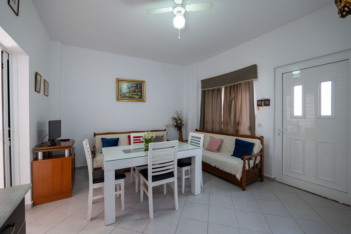 Apartamento luminoso y cómodo a solo 3 minutos de la playa de Maraci y a 5 minutos del centro de Himara. Disfruta de impresionantes vistas al mar Jónico, relájate en tu cocina totalmente equipada y siéntete como en casa. Perfecto para un máximo de 3 huéspedes, ideal para parejas, amigos o familias pequeñas.