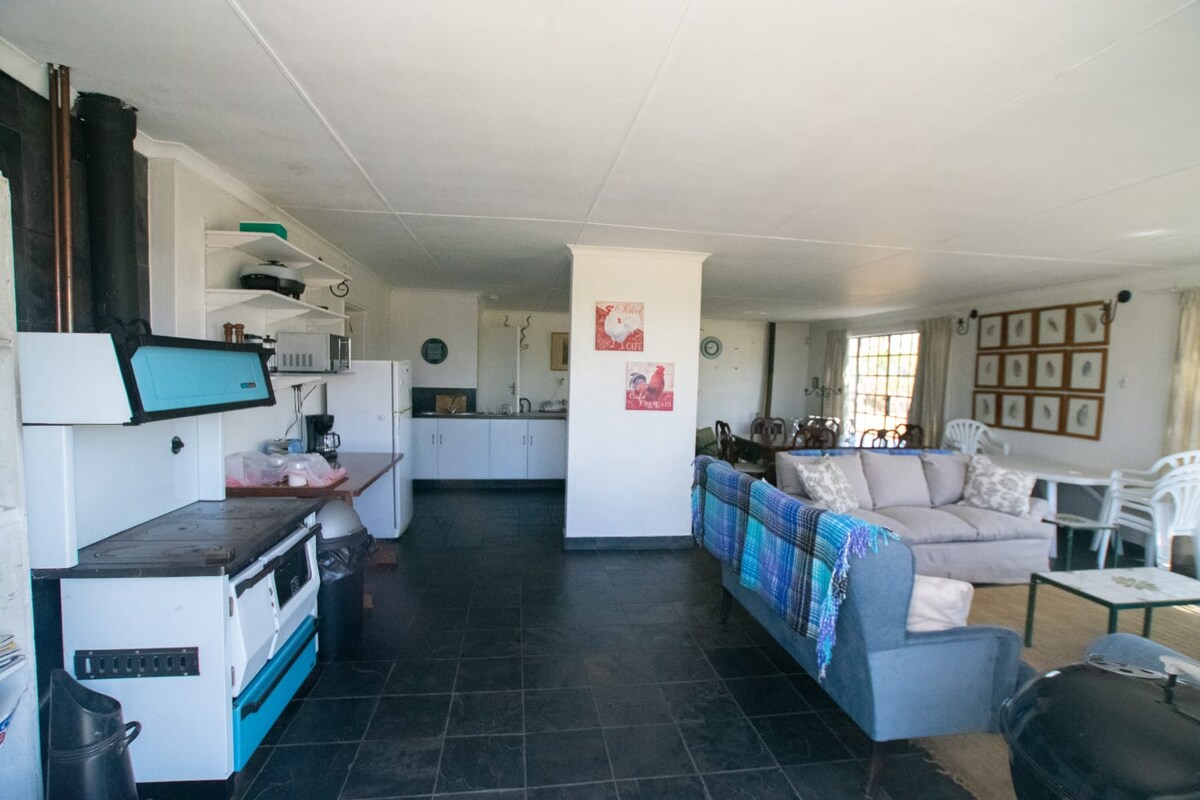 Relájate en paz en esta espaciosa y única casa de campo, donde las vistas panorámicas y la belleza natural te rodean. Ya sea que busques disfrutar de un café tranquilo por la mañana, un atardecer sobre las colinas, un chapuzón en la piscina, un braai con familiares o amigos, o una noche bajo las estrellas, esta escapada serena ofrece el descanso perfecto de lo cotidiano. Ideal para parejas, familias o viajeros solitarios que buscan comodidad, espacio y tranquilidad en la naturaleza.