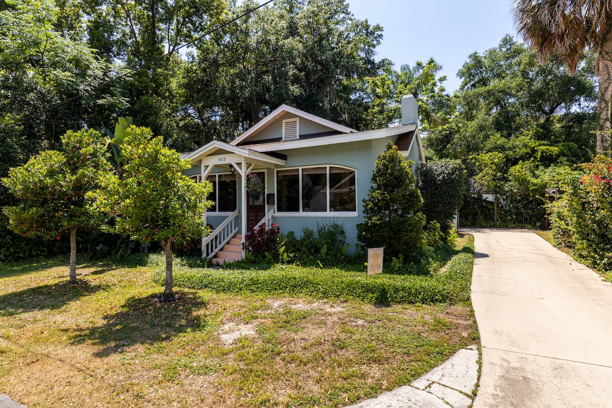 Ven a relajarte en un pedazo de historia. ¡Nuestro histórico bungalow de los años 20 ofrece justo eso! Renovamos esta casa para ofrecer todas las comodidades que esperas, al tiempo que garantizamos que su carácter único brille. Te encantará nuestra ubicación privilegiada, a unas cuadras del animado corazón del centro y del hermoso campus de la Universidad de Stetson. Comienza el día en el porche delantero, perfecto para disfrutar del vecindario, o encuentra un refugio tranquilo en el porche trasero con vistas al patio vallado, un refugio para los niños.