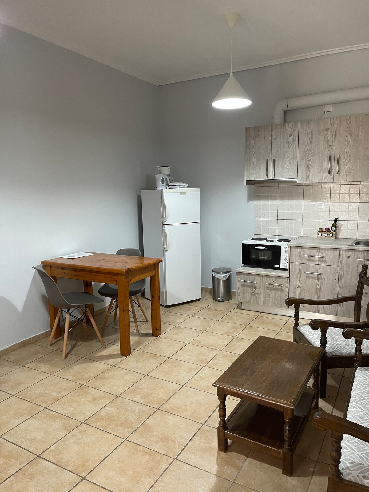 Apartamento de 30 metros cuadrados (semisótano) en la zona de Kastellokampos, a 6,4 km del centro de Patras. El espacio tiene muebles y colores de estética moderna y consta de una sala de estar de planta abierta con cocina y dormitorio con cama doble. El patio con el jardín durante los meses de verano es un punto adicional de relajación. Ubicado a 1,3 km de la Universidad de Patras, a 2,3 km del Hospital Río y a 1,7 km de la playa. Alojamiento ideal para viajes de negocios, ocio, para escoltas y para estudiantes.