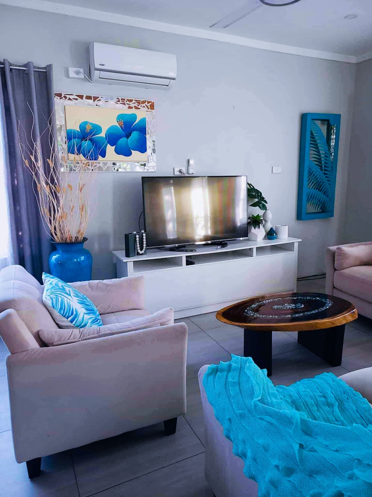 Bienvenido a nuestro espacioso refugio de 3 dormitorios y 3 baños ubicado en Votualevu, Nadi, Isla Fiji. Todas las habitaciones tienen cama tamaño queen con aire acondicionado. A solo 5 minutos en coche del aeropuerto, nuestra casa está perfectamente situada para acceder fácilmente a Denarau y a la playa de Wailoaloa. Disfruta de impresionantes vistas del Gigante Dormido desde la comodidad de nuestra enorme sala de estar. Nuestra propiedad cuenta con duchas de lluvia caliente, wifi STARTLINK y estacionamiento gratuito para tu comodidad. Reserva tu estancia con nosotros y disfruta de lo mejor de FIYI.