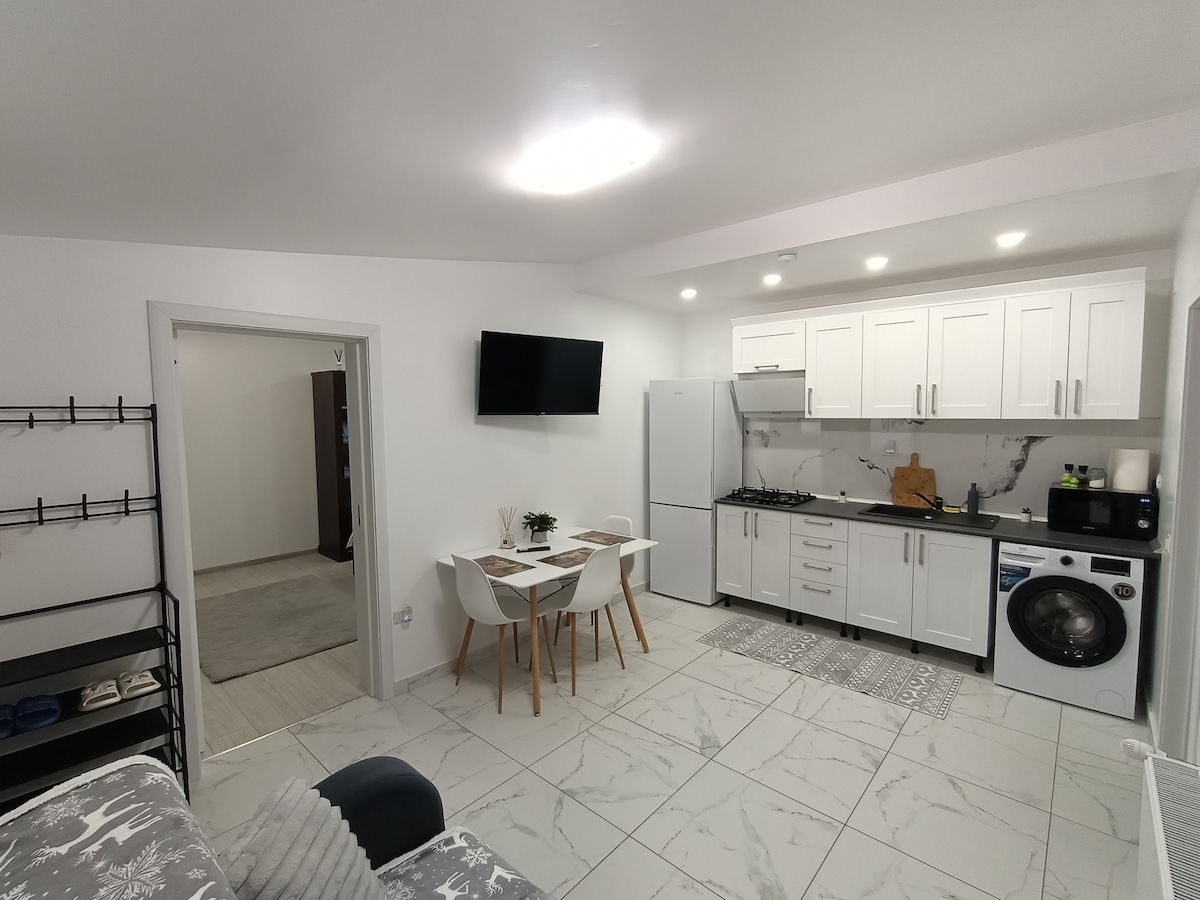 ¡Increíble apartamento de 2 dormitorios recientemente renovado a solo 5 minutos en coche de Focșani! Bienvenido a nuestro pequeño nido, que puede alojar hasta 5 personas, con las siguientes habitaciones : ● 2 dormitorios dobles ● 1 cocina con comedor ● 1 sala de estar enorme ● 1 baño + inodoro adicional ● 2 balcones frente a nuestro encantador pueblito El apartamento se encuentra a solo 5 minutos en coche de la ciudad principal de Focșani y también está conectado con el autobús al centro de la ciudad. Tiendas a 2 minutos a pie ¡Siéntete libre de sentirte en casa!