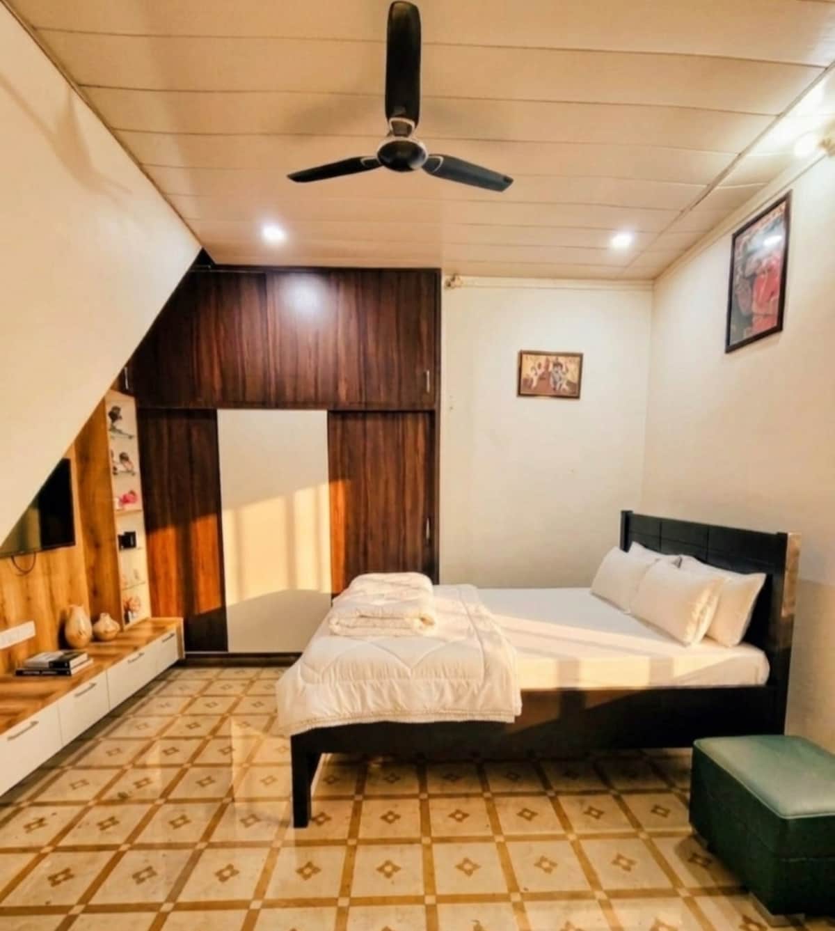 Welcome to Kridha Homestay, a serene and comfortable retreat located in the lush surroundings of Vrindavan. Enjoy our well-appointed accommodations and convenient amenities during your stay. A spacious, comfortable, traditional 3BHK ground-floor property featuring two air-conditioned bedrooms with king-size beds and one non–air-conditioned bedroom with a single bed. Extra mattresses are available for additional guests, making it ideal for families and groups.
