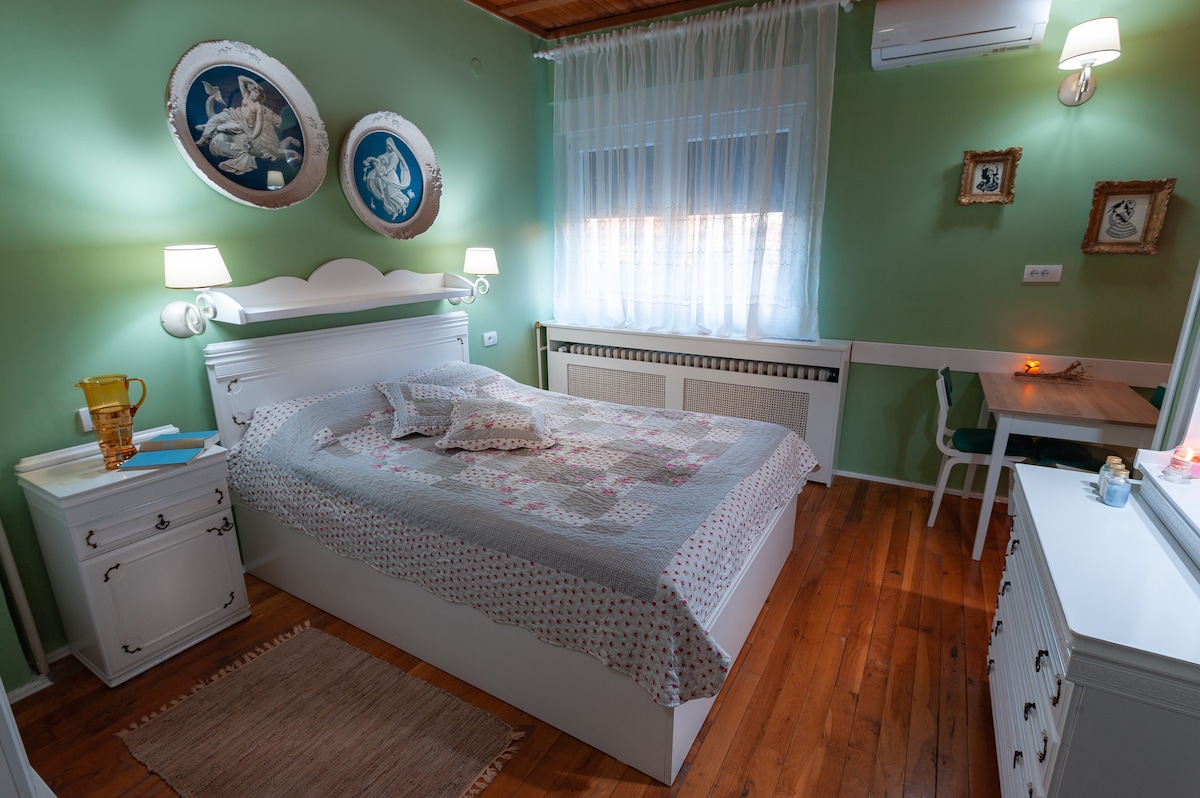 The apartment is unique in that it is located in the pedestrian zone and Vrnjačka Park. This area represents the greenest and most beautiful part of Vrnjačka Banja. In front of the building, there are a few restaurants offering a very affordable daily menu. A well-stocked grocery store is only 80 meters away from the building. The mineral water spring 'Snežnik' is 50 meters from the property. The 'Merkur' rehabilitation center and the 'Fons Romanus' spa center are a 10-minute walk.