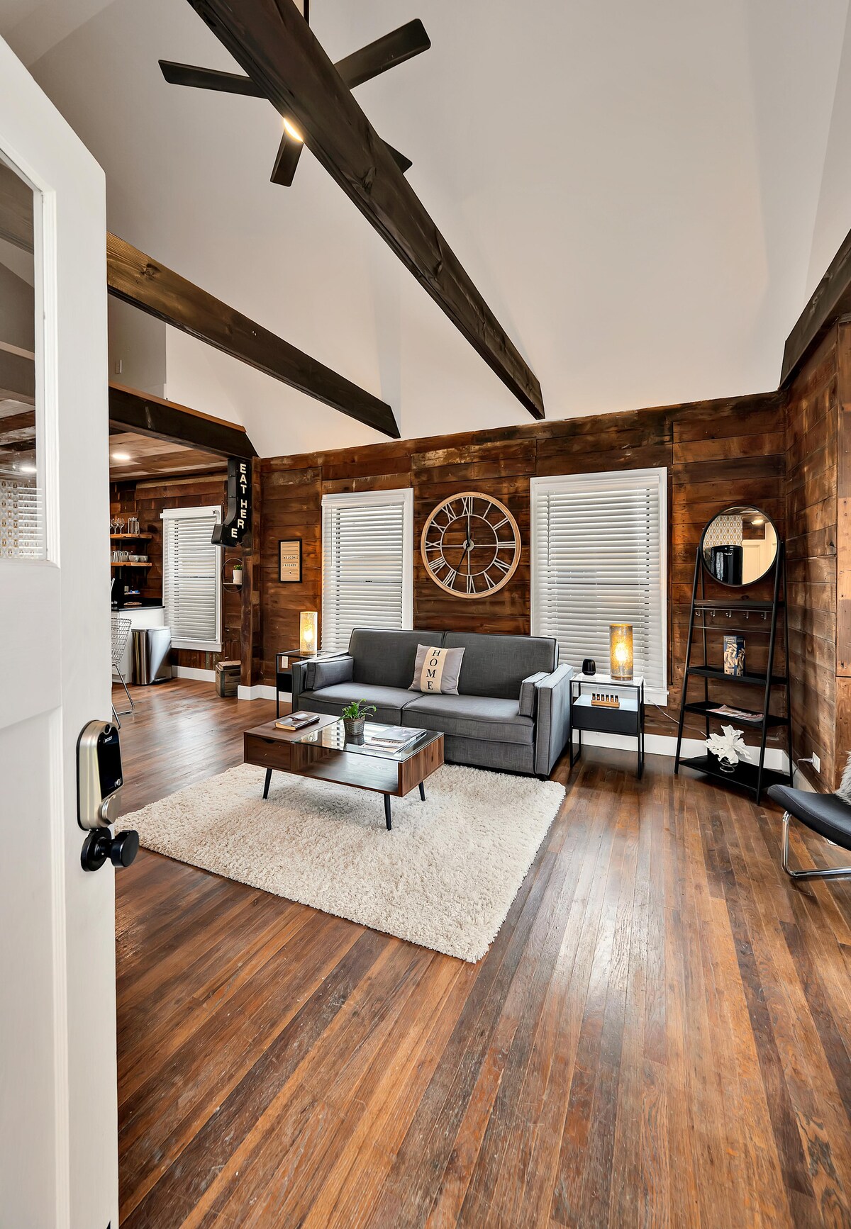 Green Door Lofts, presentado en Fixer Upper Urban Loft Challenge y conocido como «Funky Town» por Chip, es un complejo de lofts de lujo de 9 unidades en el corazón del bullicioso distrito Silo de Waco. Estamos al lado del histórico Hippodrome Dinner Theater y a pocos pasos de tiendas eclécticas, tiendas de antigüedades, salas de degustación de vinos y música en vivo. El mercado Magnolia está a poca distancia a pie o puedes coger el tranvía gratuito que para fuera. Cada loft está diseñado con un estilo único y ofrece una experiencia distinta.