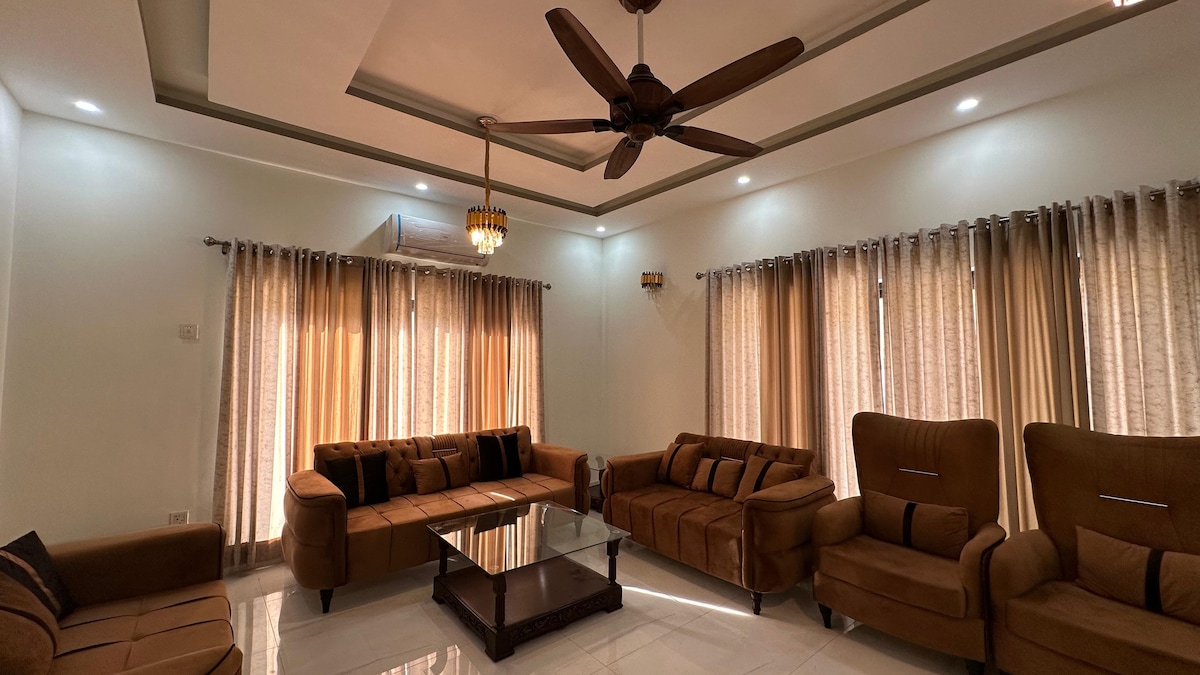 Disfruta de la comodidad moderna en este departamento familiar y lujoso de 3 dormitorios y 3 baños en el lujoso Apollo Heights, E-11 (Islamabad continental, no DHA BAHRIA ETC). Disfruta de un salón luminoso, balcón privado, televisor inteligente de 55 pulgadas y conexión Wi-Fi rápida en una ubicación segura y céntrica. La tienda de comestibles y la farmacia están a pocos pasos. Ideal para familias, grupos y viajeros de negocios que buscan una estancia limpia, tranquila, elegante y totalmente amueblada a buen precio cerca de F-9 Park, la mezquita Faisal y el centro comercial Centaurus. Anfitrión: Naqvi's.