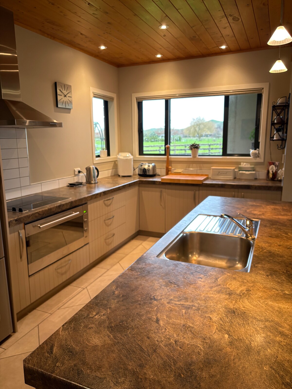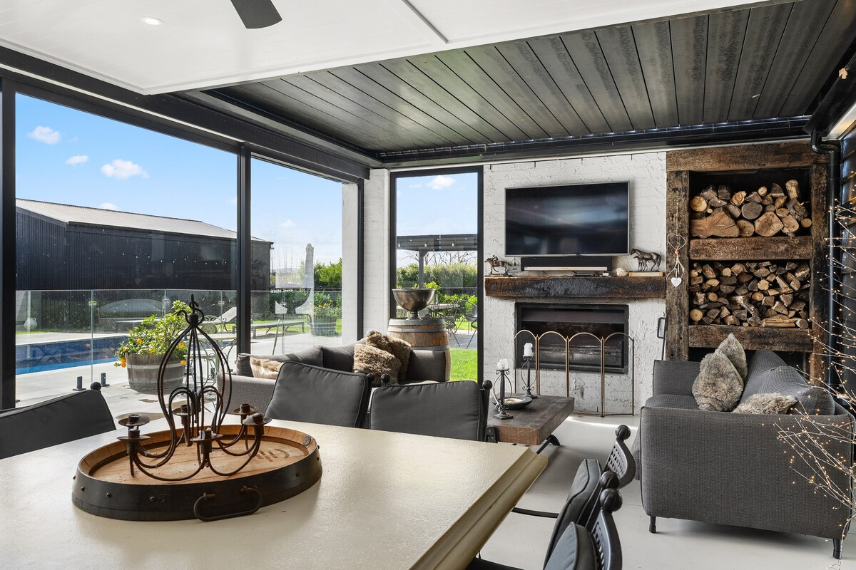 El rancho: un refugio rural privado para familias y grupos de hasta 15 huéspedes, a pocos minutos de Cambridge y Hamilton. Este alojamiento rural privado, enclavado entre las exuberantes tierras de cultivo verdes de Waikato, es ideal para equipos deportivos, familias numerosas, invitados a bodas y escapadas con amigos. Disfruta del uso exclusivo de la propiedad, que cuenta con un centro comunitario, cabañas, sala de juegos, spa, chimenea y espacios de entretenimiento al aire libre. Este espacio apto para mascotas es el mejor lugar para relajarse, recargar energías y conectarse.
