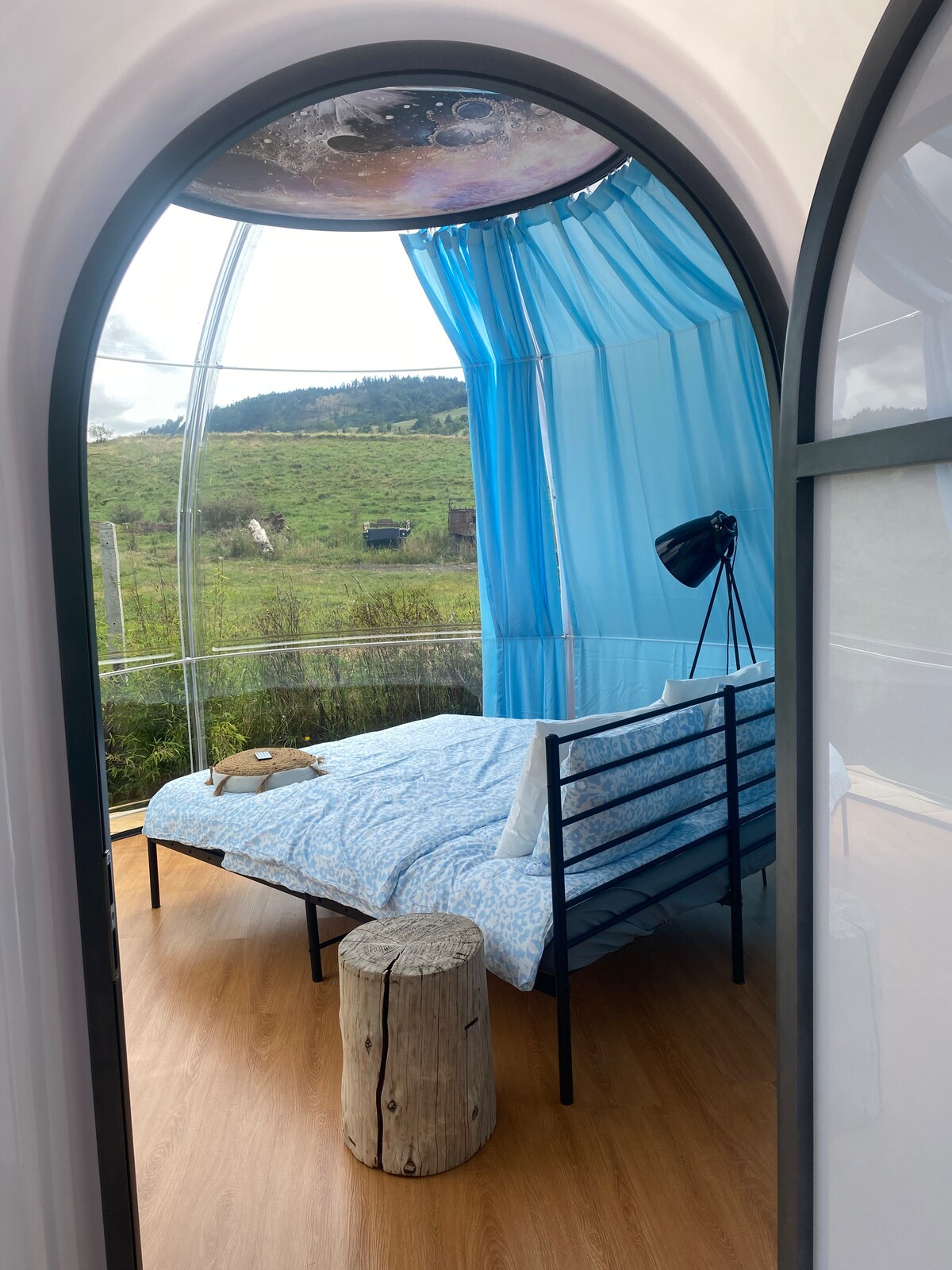 Te invitamos al jardín donde te espera una tienda de campaña. Y en la tienda hay una gran cama, hecha por mi Maniek. A veces la lluvia fluye por las paredes, a veces el sol os despertará. Este lugar es único. Y para personas excepcionales. Las fotos no reflejan Lo que te espera aquí Las gallinas cantan, las vacas mugen, a veces también ladra Tajs. Campos alrededor, cerca del bosque, así que tienes que visitarnos