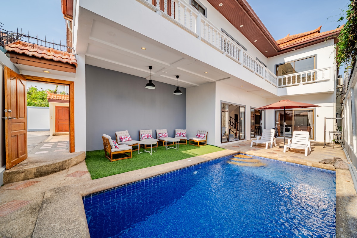 R1-8 minutos a pie de Walking Street-4BR-Pool, barbacoa, playa