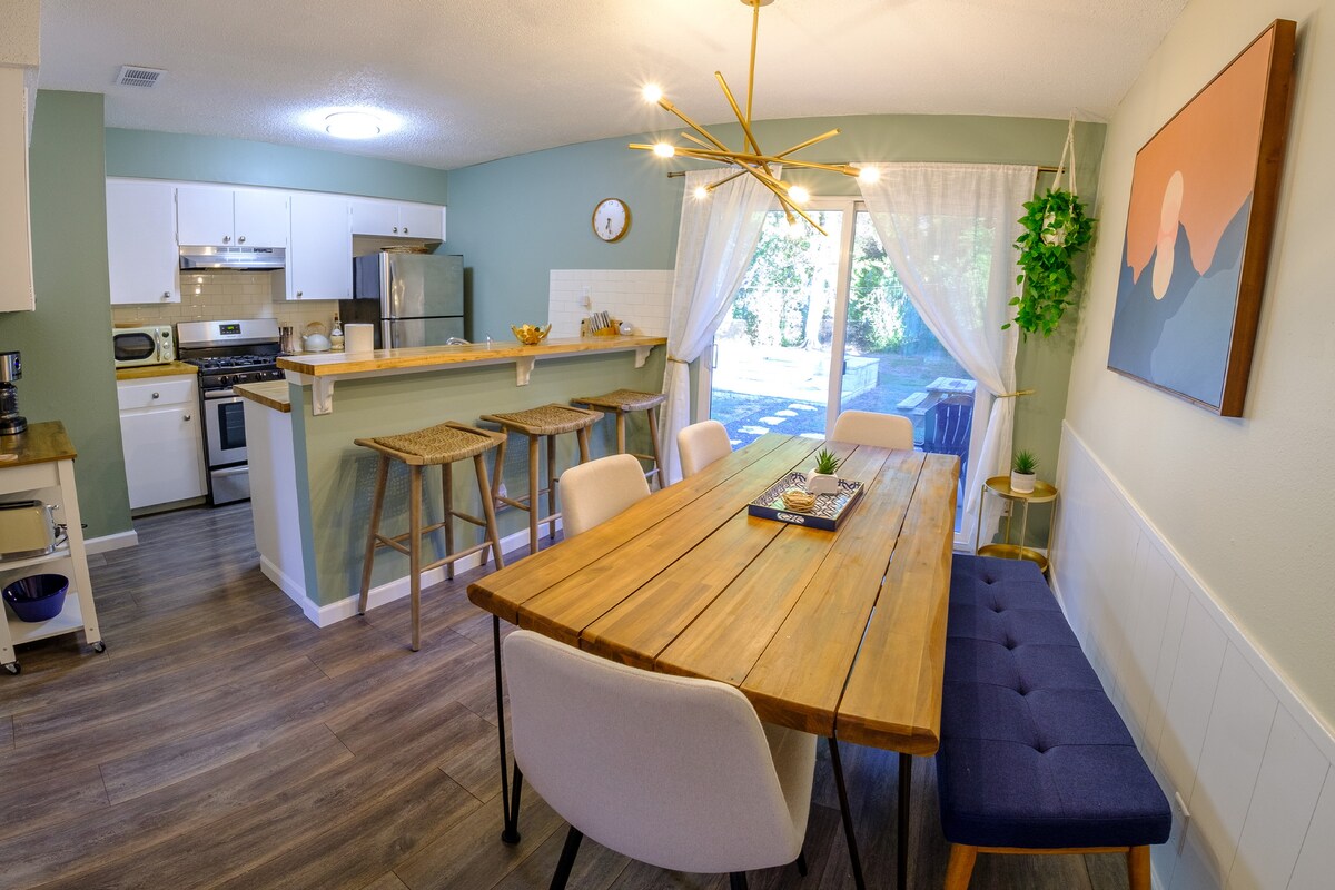 Casa recién renovada en un tranquilo callejón sin salida a 19 minutos del centro. Cada dormitorio tiene un baño y un vestidor. El dormitorio principal tiene una cama tamaño king California y el segundo dormitorio tiene una cama tamaño queen. Ambos dormitorios están en el segundo piso. Tenemos una cama plegable en el garaje, así como un gran sofá que se puede utilizar para el quinto y sexto huésped. Solo se permiten huéspedes. No se permiten visitas adicionales, fiestas ni eventos. Las infracciones pueden dar lugar a la cancelación sin reembolso. El horario de silencio del vecindario es de 10:00 p. m. a 8:00 a. m.