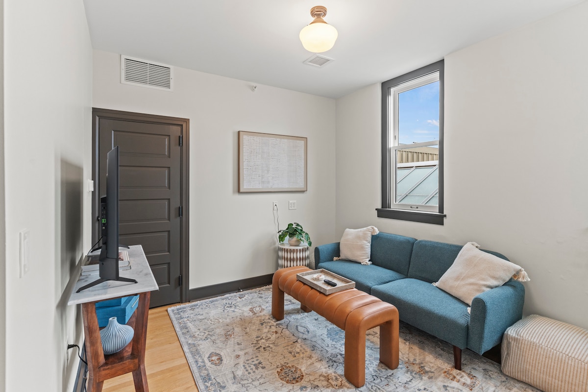 Esta es una unidad de un dormitorio en un edificio de 3 unidades con 1 plaza de aparcamiento. El espacio está completamente separado de las otras unidades del edificio. La sala de estar y el dormitorio del tercer piso tienen una gran vista sobre los edificios circundantes. Hay un baño espacioso, con toallas limpias y frescas, y algunas necesidades básicas, secador de pelo, etc. La cocina es nueva y cuenta con estufa, nevera y microondas. Se proporcionan todos los utensilios de cocina y algunos artículos básicos para cocinar. Se proporciona una cafetera de filtro.