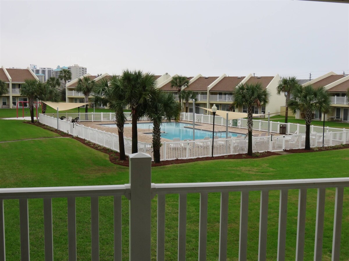 Enjoy the peaceful,laid back,family friendly atmosphere of Keely's hideaway.Located on the 2nd floor in the low rise beachfront condos in Aquavista, with community hot tub and outdoor pool, with beautiful views of the Gulf of Mexico's crystal clear emerald water and pristine white sand beaches. Watch dolphins on your balcony. Walking distance to Grocery store, CVS, fast food, fine dining, and home to world famous oyster bars. Just a quick 15 minute car ride from ECP airport to the condo.