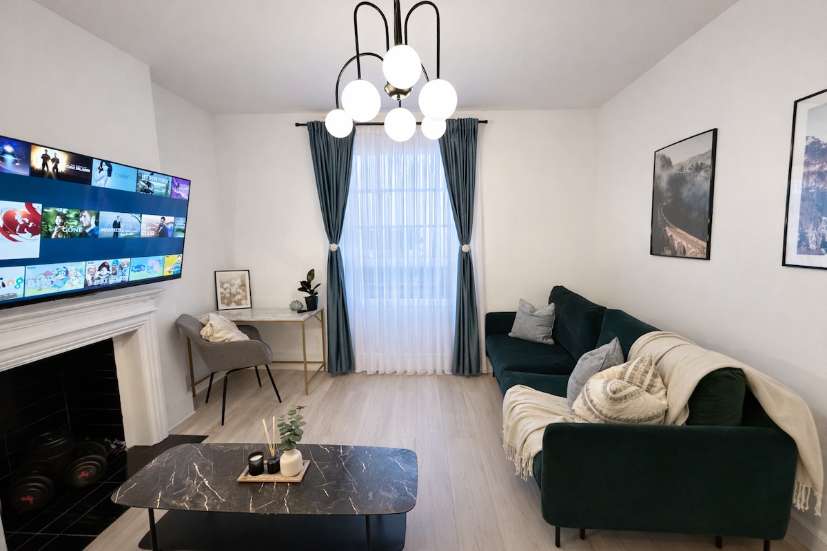 Alójate en nuestro moderno apartamento de 2 dormitorios en el centro de Londres, ¡una estancia de lujo con todas las comodidades a tu disposición! Disfruta de un espacio acogedor y totalmente equipado con un televisor inteligente de 55pulgadas, WiFi de alta velocidad, cocina completa y todo lo esencial. ¡Ubicación privilegiada! Camina o toma un corto viaje en autobús a las principales atracciones como el Palacio de Buckingham, el West End, el Támesis, las universidades líderes (UAL, LSE, UCL, Kings y otras). La zona es segura, tranquila y residencial, con parques, mejores restaurantes, cafeterías y excelentes conexiones de transporte.