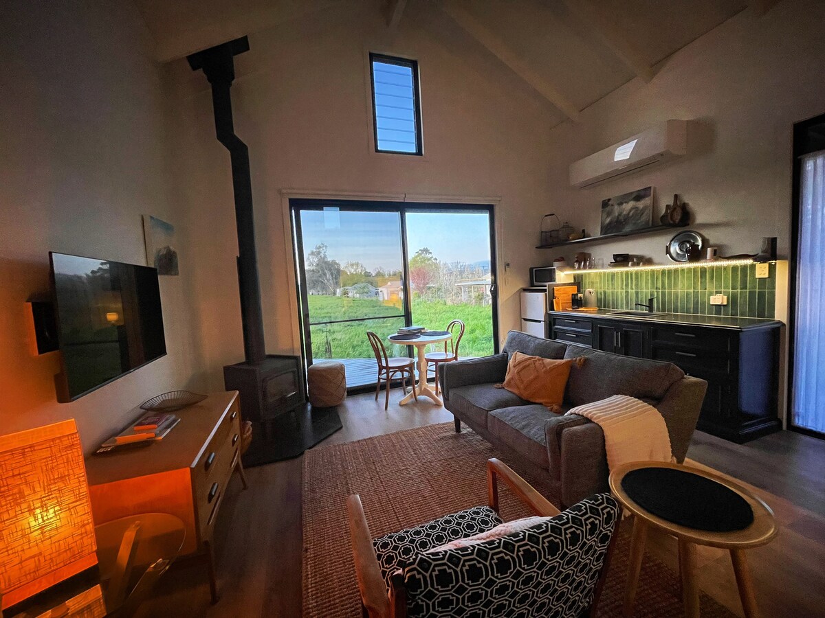 Welcome to Lume Studio. New, stylish and located in the heart of Whitfield, Lume is the perfect base for exploring and enjoying all this wonderful region has to offer. Architecturally designed with a nod to the humble corrugated shed, Lume is a luxurious, light and spacious couple’s retreat. Snuggle by the fire or relax on your private deck and enjoy the expansive views. Self contained with kitchenette to dine in or only a few minutes walk from the pub, cafe, general store and wineries.