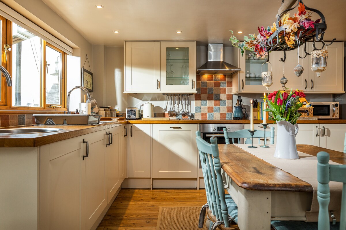 Un espacio tranquilo y profundamente lujoso para recargar energías y reconectar. The Shippon es un establo de vacas meticulosamente convertido con suelos de hormigón pulido y radiante, paredes de color verde oscuro suavemente curvadas, cocina hecha a mano, rincones de lectura cálidamente iluminados y materiales naturales. Mantas de lana, sofá de plumas, estufa de leña escandinava antigua, cama tamaño king con sábanas y edredón franceses, ducha de cascada y las toallas más suaves. Nuestra tranquila aldea de Devon solo está iluminada por las estrellas por la noche. Es posible que duermas mejor de lo que has dormido en años.