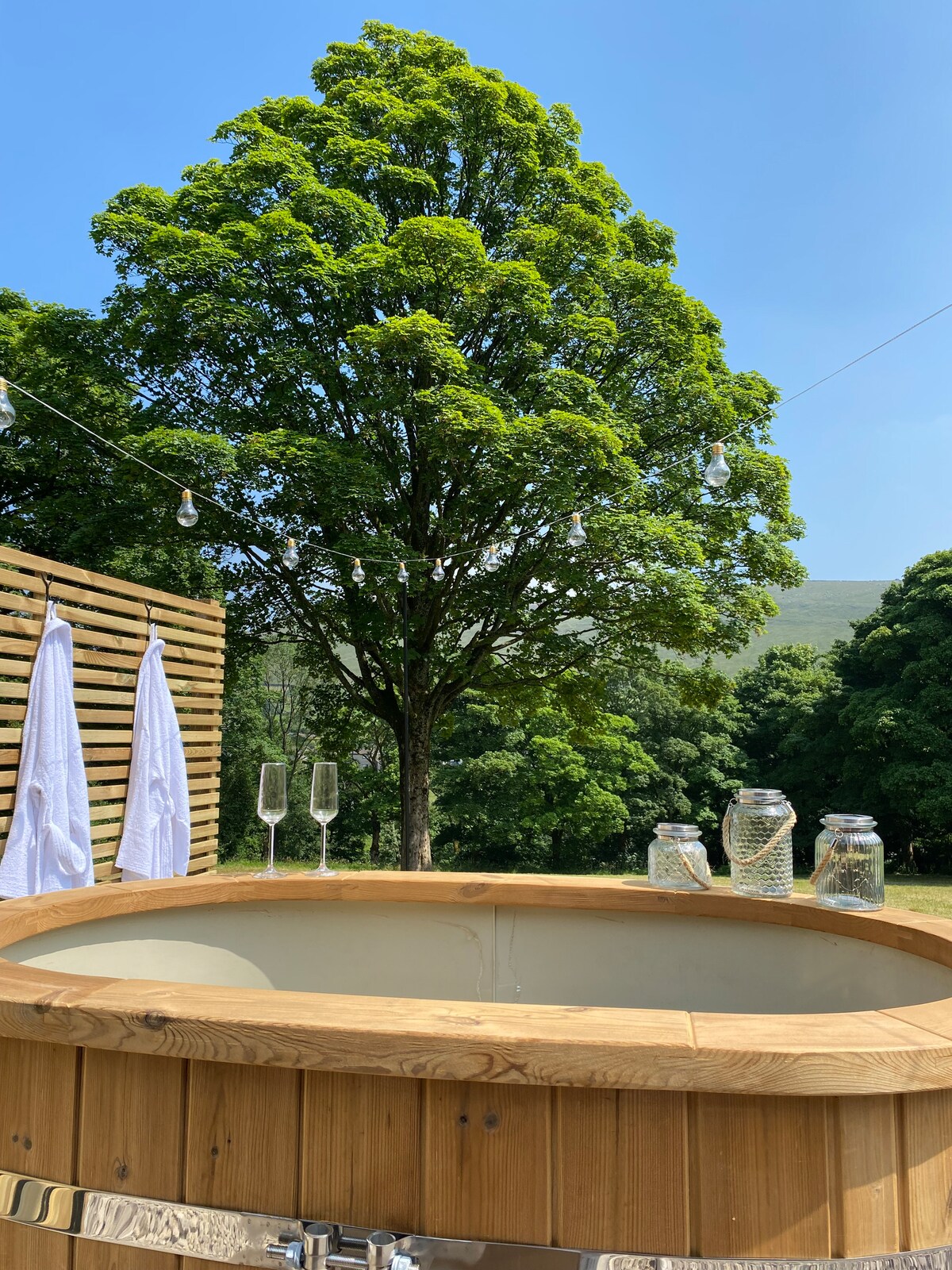 Las lujosas Shepherd Huts de Stoodley View tienen su propio jacuzzi de leña y una zona exterior privada y están situadas en una ubicación envidiable en la impresionante campiña de Pennine, entre las ciudades comerciales de Hebden Bridge y Todmorden. Estamos perfectamente ubicados para que te sientes y te relajes o para que te pongas activo y explores. Perfectas para parejas, nuestras lujosas Shepherds Huts son totalmente independientes y cuentan con una cocina totalmente equipada, cuarto de ducha, zona de estar, cama tamaño king y calefacción por suelo radiante en todas partes.