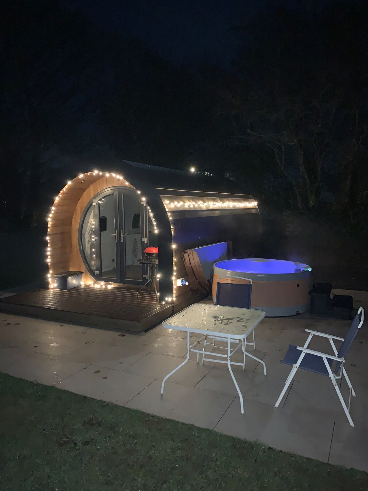 'Brook pod': relájate y descansa en este espacio privado tranquilo y elegante. Especificaciones de alta gama, ubicado en más de 1,5 acres de jardín establecido, ubicado junto a un arroyo al que se accede a través de un pequeño puente, muchos lugares para explorar, grandes áreas abiertas con un estanque, sala de juegos en casa/ gimnasio, fogatas, hamacas, tenis de mesa y más. Bastante mágico por la noche con la iluminación del árbol. Ubicado en el centro de Pembs. Realmente siento que este entorno es bastante único y simplemente hermoso. * parada ideal si visitas la isla de Skomer 🐧