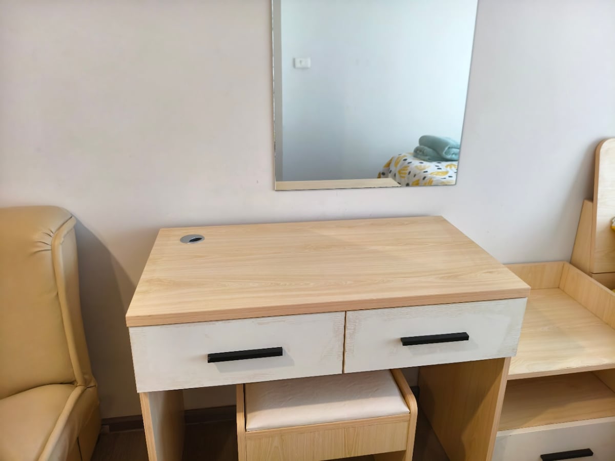 Apartamento de un dormitorio y una sala de estar con bañera en el piso 991 de la estación de metro de Paknan Lu/mercado. En el piso inferior hay un restaurante, una cafetería y un bar.