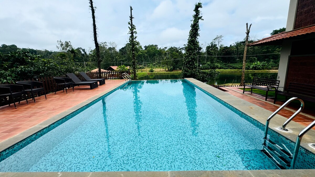 Relájate con toda la familia o amigos en este tranquilo complejo turístico ubicado en la zona de la presa de Banasura en Wayanad. Encontrarás tu habitación con vistas increíbles y espaciosa. También tenemos una piscina para sumergirte y refrescarnos . Fácil acceso con auto y otros vehículos.