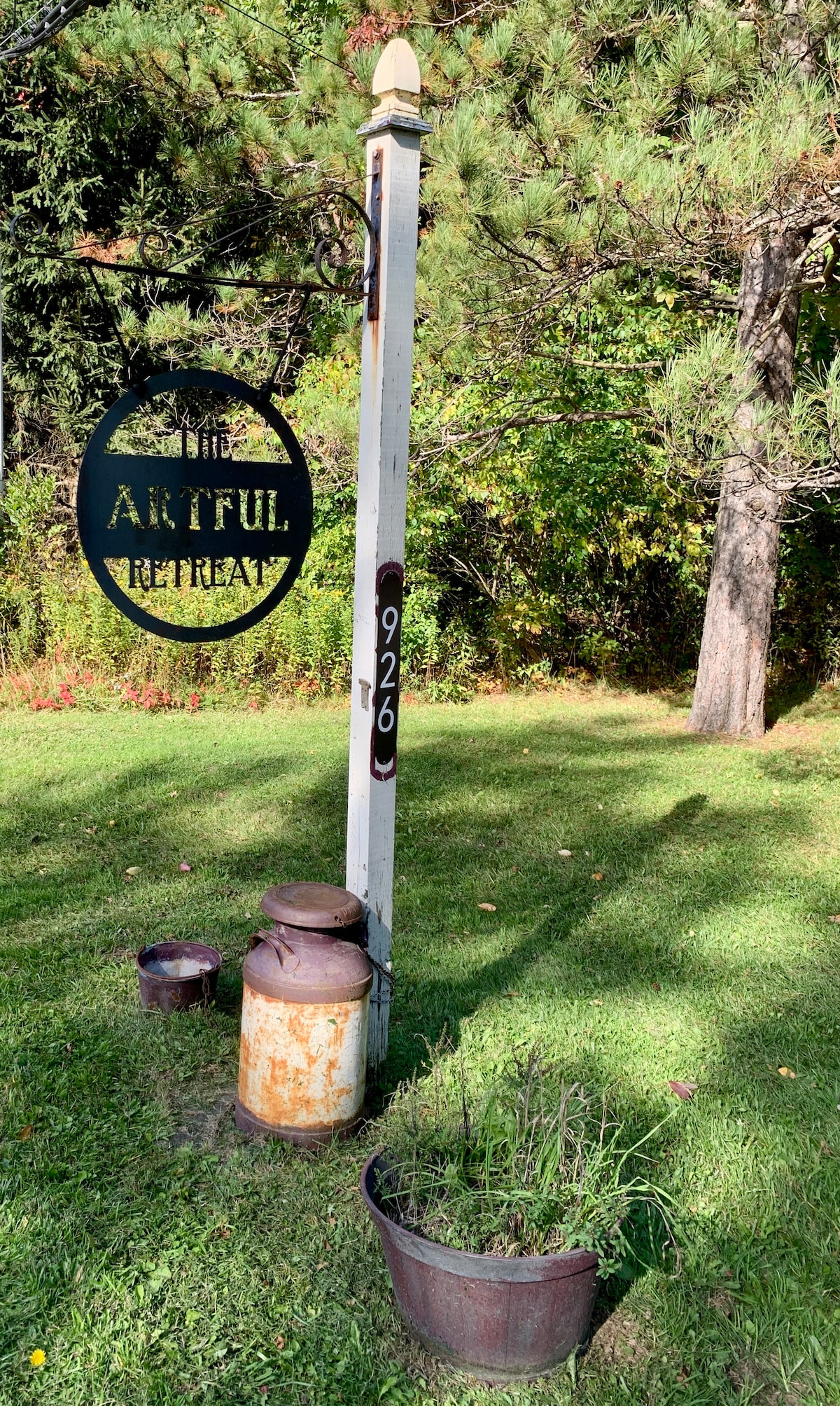 La Casa de Arte está situada en un Parque de Esculturas desarrollado por los artistas Tom y Carol Holmes. Los 38 acres de colinas ondulantes, tierra de césped con vistas al valle están bordeados por dos arroyos y bosques. Las vistas son magníficas. La casa está situada en el segundo nivel de tres colinas ondulantes. Tom crea experiencias mágicas y que cambian la vida en el paisaje; en el Parque de Esculturas del Santuario de Aves EBC. La Casa de Arte ofrece una privacidad excepcional, una increíble tranquilidad y una extensa vida silvestre. Una experiencia prístina te espera.