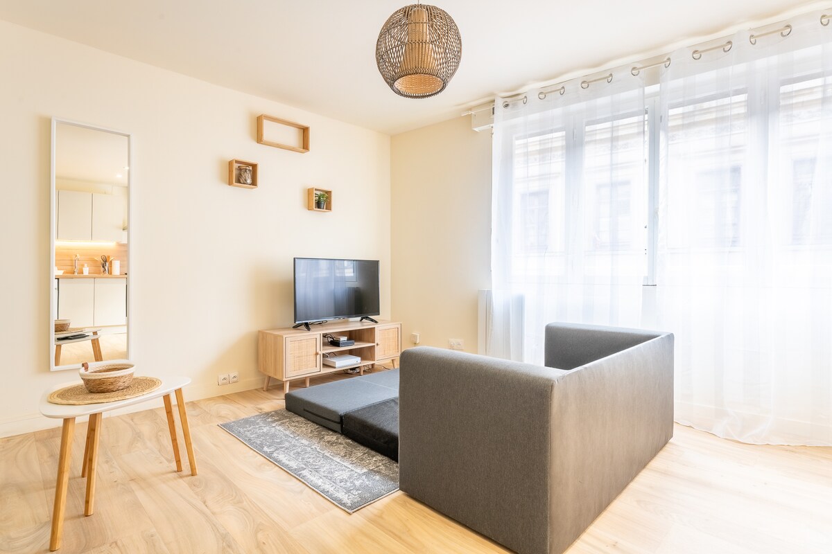 Situado a 800 metros de la estación de tren y el centro de la ciudad, este encantador estudio de 14 m2 con todas las comodidades es lo que necesita. ¿Vienes para una misión, para visitar, para ver a la familia? Nuestro encantador estudio lo seducirá por su practicidad y ubicación. Un servicio de self-check in le permitirá acceder a este alojamiento de la RDC, con total autonomía y a la hora que desee.