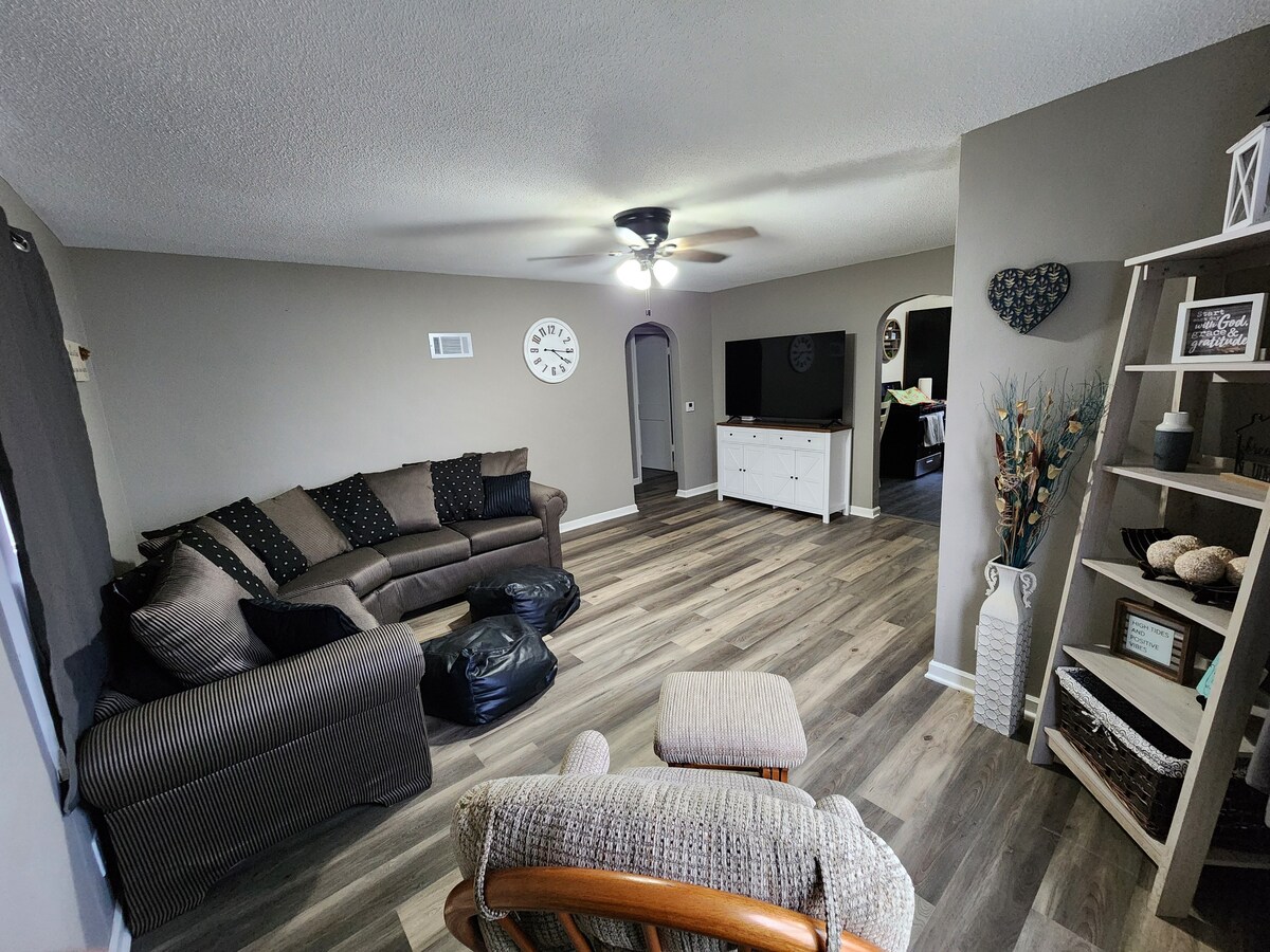 Our little Airbnb home has been completely remodeled , 2 bedroom , one with a King Bed and one with a Queen Bed . Kitchen is a beautiful butcher Block Tops and loaded with everything you need. Large living room with 65inch TV Large Backyard ( spring of 2026 is getting a makeover) My personal favorite room is the enclosed porch upfront where you can enjoy a morning coffee or a evening in peace.
