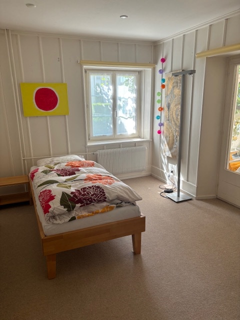 Bienvenido al pequeño oasis en medio de Sargans. El estudio renovado se encuentra en nuestra casa unifamiliar en una zona tranquila en el centro de Sargans. El bonito alojamiento tiene capacidad para 2 personas. Una cómoda sala de estar, mesa de comedor y de trabajo, cafetera Delizio, cama doble grande (180x200 cm) y asientos privados en el idílico jardín que proporcionan espacio y relajación. Su céntrica ubicación lo convierte en un punto de partida ideal para muchas actividades y excursiones.