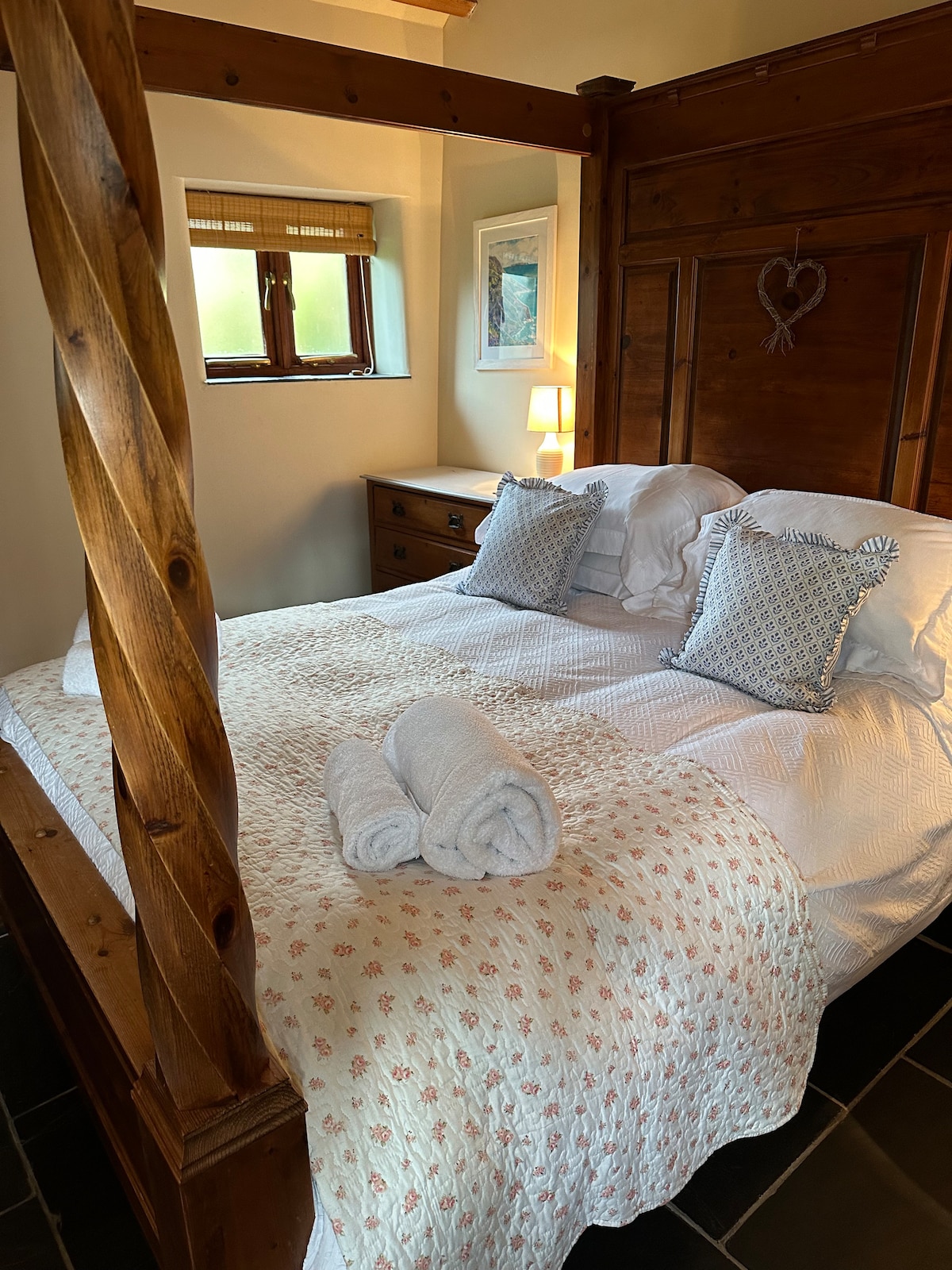 Este pintoresco granero independiente está lleno de carácter y paz (sin WIFI). Hay una cocina/sala de estar de planta abierta con una acogedora estufa de leña (leña disponible a £7 en efectivo por red) y una barra de desayuno con cubierta de pizarra. La propiedad tiene pisos de roble macizo en todas partes, excepto la pizarra en el baño, ¡así que no olvides tus pantuflas! La cocina incluye horno, placa de cocción, nevera-congelador, tostadora, microondas y hervidor de agua. La acogedora sala de estar se abre a un atractivo patio y zona de césped. Lo sentimos, no se admiten mascotas.