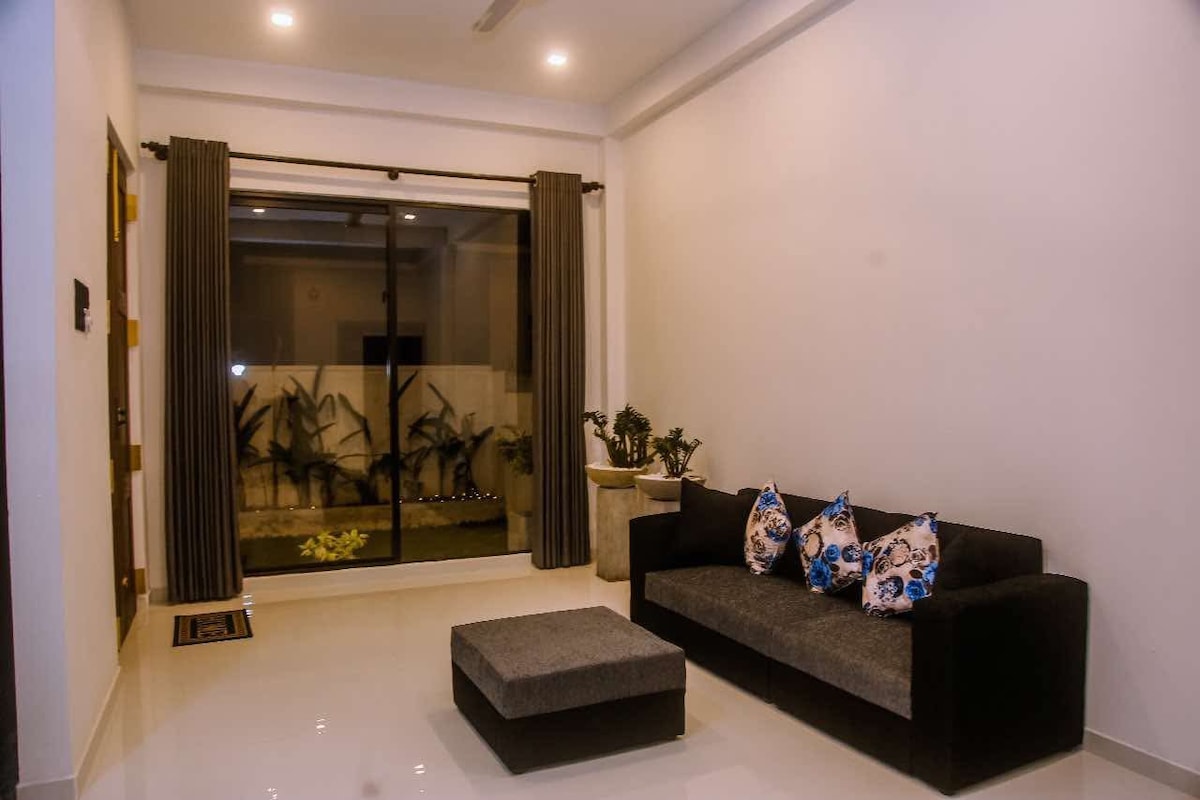 Disfruta de tu estancia en nuestra casa privada frente a la playa ubicada en el corazón del sur de Mirissa. Este espacioso dúplex es perfecto para amigos o familiares que buscan una estancia tranquila. Espacio La unidad cuenta con 2 dormitorios, 2 baños, sofá cama y cocina moderna totalmente amueblada. El amplio comedor está junto a una gran mesa con capacidad para seis personas. La pared gris se sincroniza con los cojines azul pavo real, creando así un ambiente acogedor en la sala de estar donde puedes pasar muchos momentos de calidad.