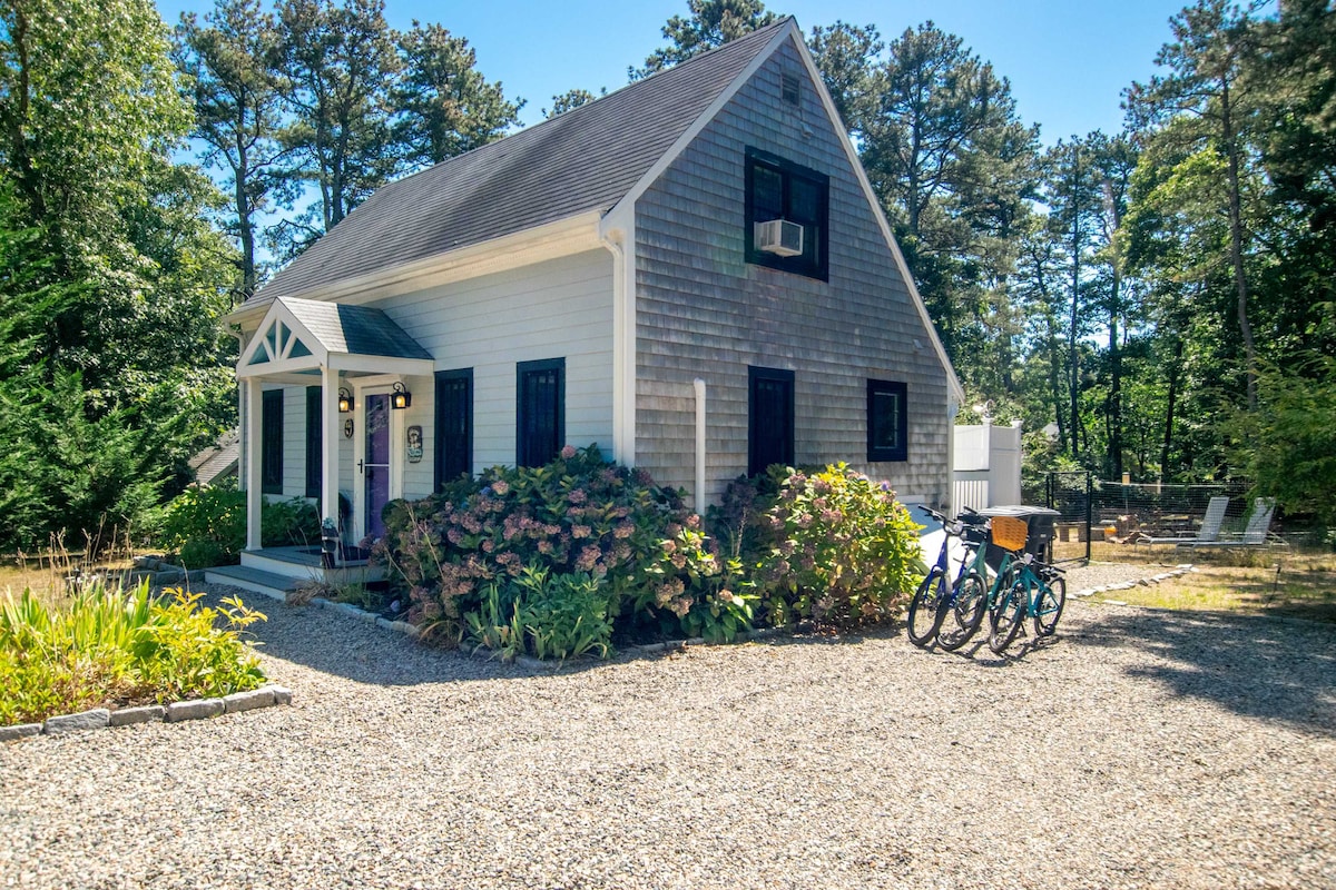 Diversión para parejas/familias todo el año en una encantadora casa de campo privada de Cape Cod con porche, patio y ducha al aire libre (en noviembre/diciembre/enero se convierte en una casa de campo de pan de jengibre). Dentro: espacio abierto con cama tamaño queen y sala de estar. La escalera conduce a un altillo para dormir de poca altura con 2 camas individuales. Baño completo con ducha interior. Cocina americana: ver descripción a continuación. Suministramos té, café local, especias, condimentos, parrilla de gas, neveras, toallas y sillas de playa. Para dormir hasta 8 personas, alquila también nuestra habitación superior en Airbnb.