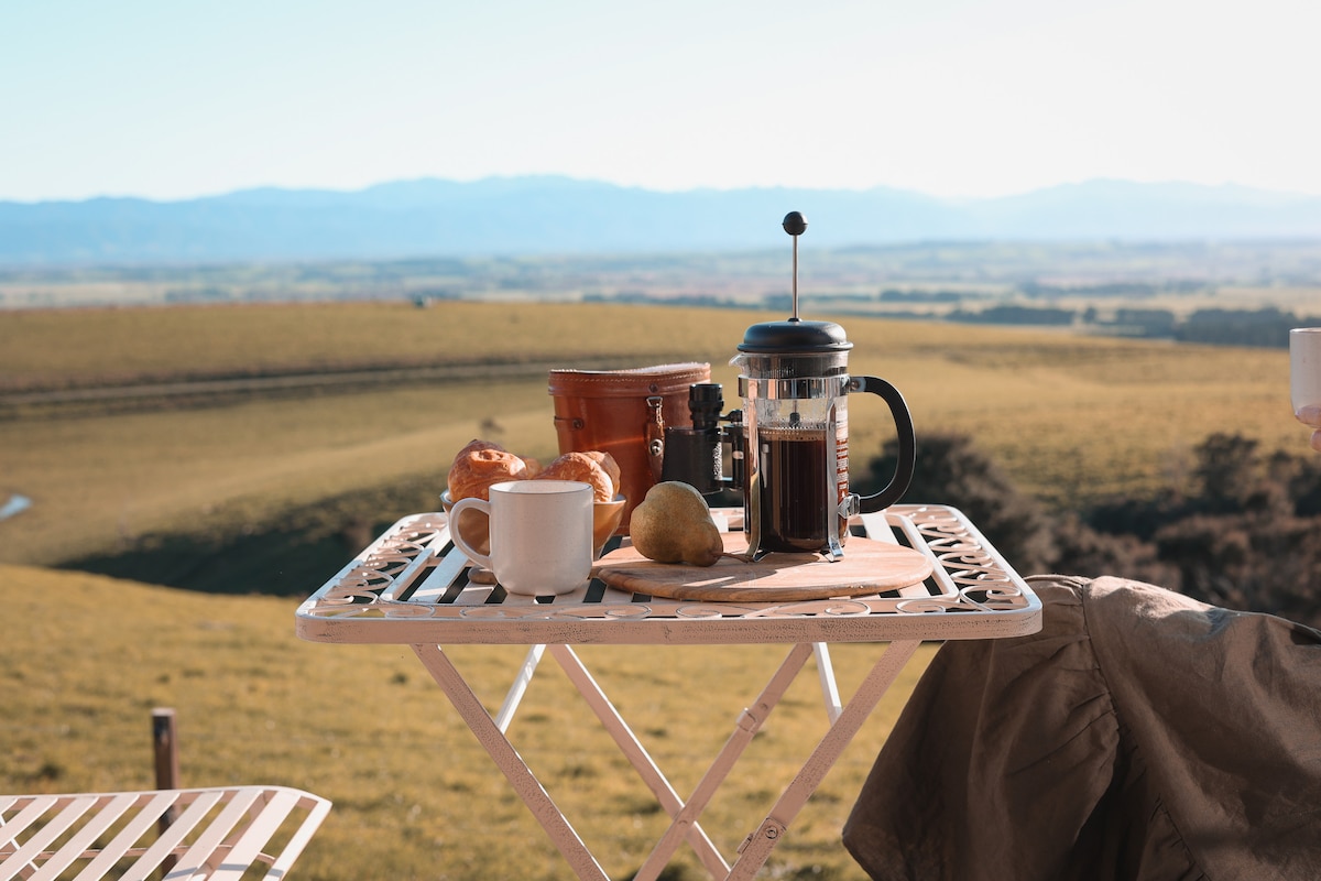 Monta, deambula y relájate en nuestro parque de bicicletas de montaña. Máxima paz y tranquilidad en la cima de una colina con nada más que vistas. Una vez que hayas terminado de relajarte, puedes dar un paseo en bicicleta de montaña y elegir entre 20 pistas. ¿Frío? No hay problema, el fuego estará listo para encenderse a tu llegada. Tabla de quesos y vino suministrados a tu llegada y una cesta de desayuno de productos de origen local/NZ, todo incluido en tu estancia. No olvides tu ropa de baño para el jacuzzi con una vista increíble.