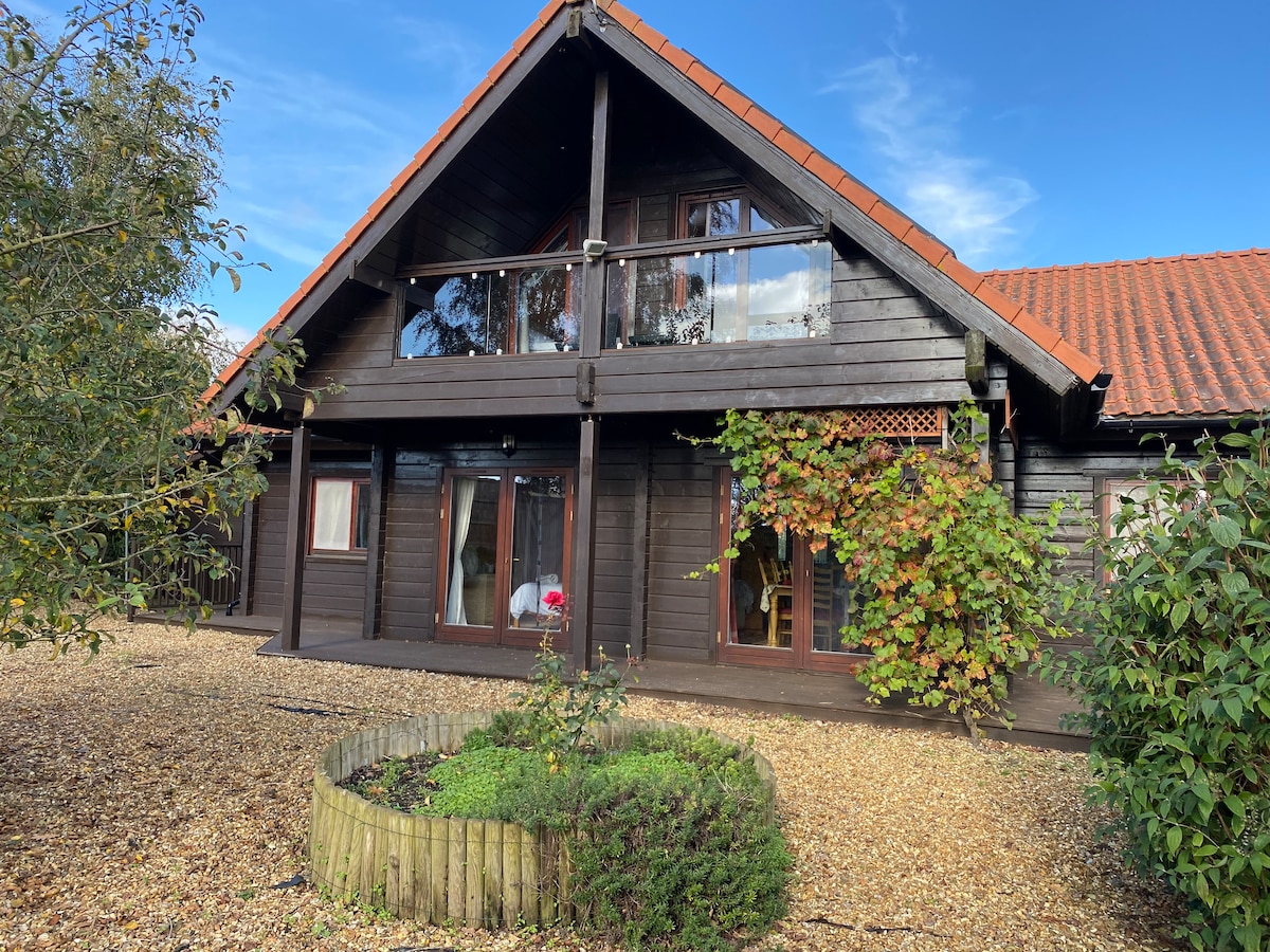 Amplia cabaña de cuatro dormitorios con vistas a un lago de agua dulce en West Norfolk. La cabaña está a aproximadamente 8 millas de la histórica ciudad comercial de Kings Lynn, a aproximadamente una milla de Pentney Abbey (lugar de la boda) y con la costa virgen de North Norfolk a poca distancia en auto. La cabaña tiene capacidad para 8 personas y ofrece un entorno relajante para que las familias y amigos se reúnan. *Echa un vistazo a nuestro anuncio de casas rurales independientes para obtener una mejor oferta*