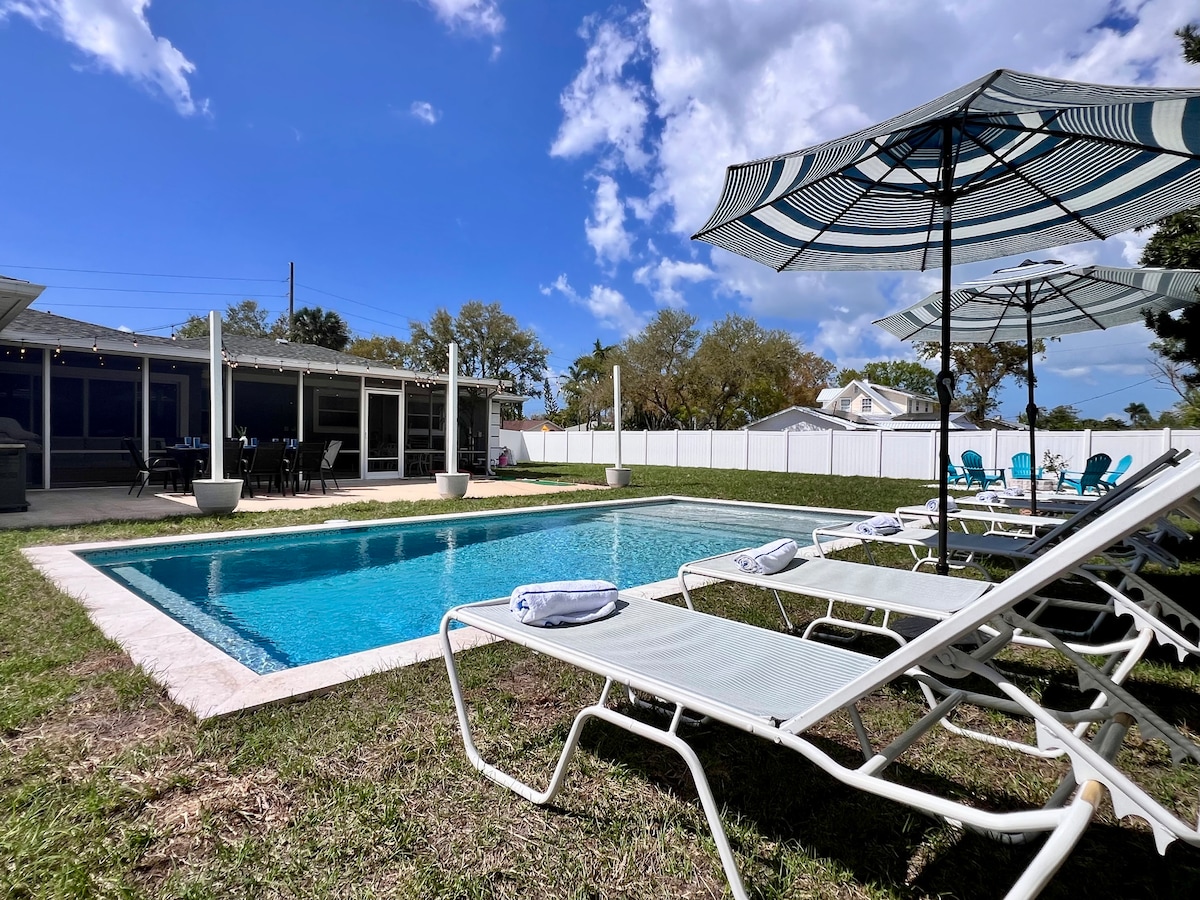 ¡Te damos la🌴 bienvenida a Beachway Haven! Este ⭐️ refugio de 5 estrellas está a pocos minutos de las playas vírgenes de la isla Anna Maria y del golfo de México. Sumérgete en la relajación con tu propia piscina de agua salada climatizada y jacuzzi de hidromasaje, enclavada en un oasis tropical. A solo un salto de campos de golf, parques naturales, IMG Academy y el acceso a la playa de Palma Sola Causeway, tu puerta de entrada a paseos a caballo, kayak y un sinfín de aventuras en la arena. ¡Las tiendas y restaurantes también están a pocos minutos!