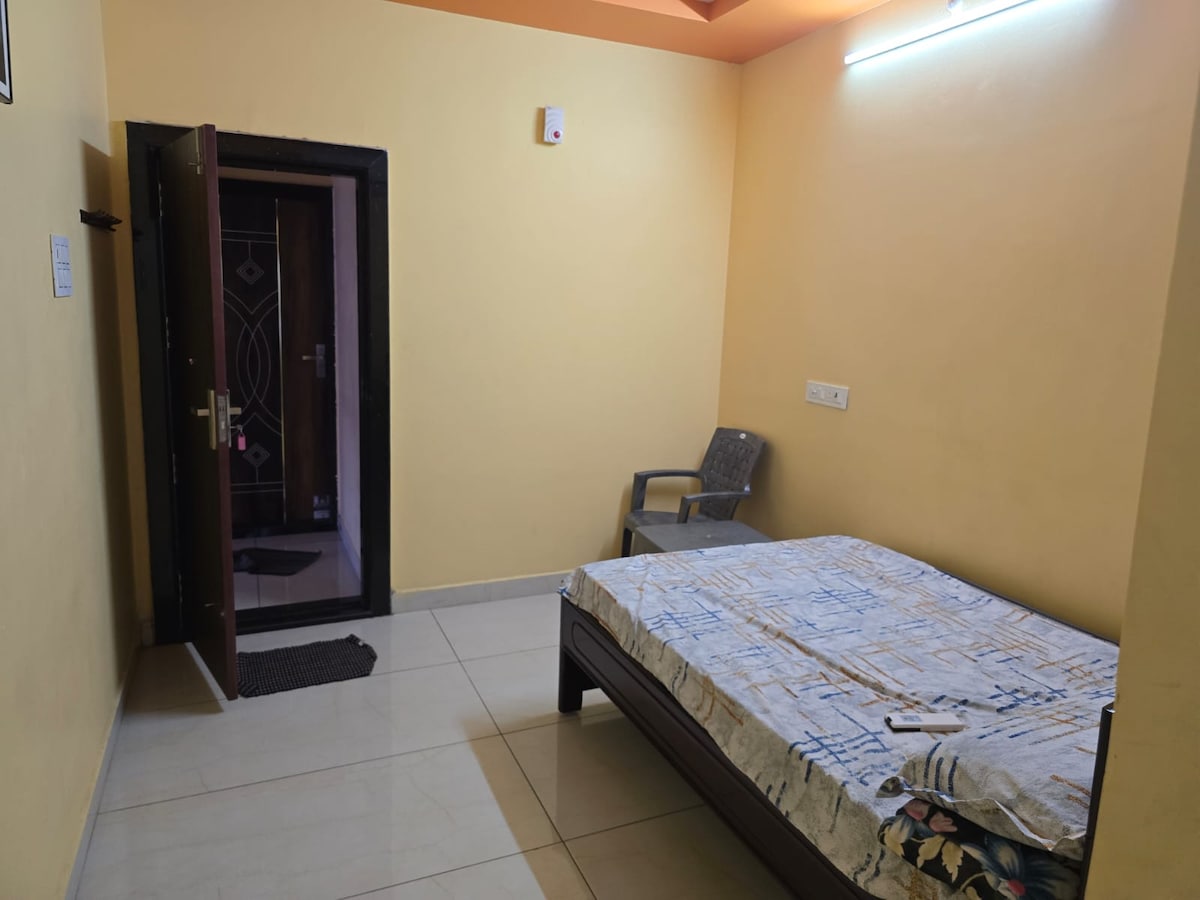 Cómoda estancia en la planta baja con aire acondicionado ideal para 3 huéspedes, ubicada junto al Hospital Infantil Siddhartha, V.L. Puram, Rajahmundry. Incluye una habitación privada con TV, cocina adjunta y baño. Perfecto para asistentes de pacientes, parejas y profesionales que buscan una estancia corta y tranquila. Fácil acceso a la parada de autobús, la estación de tren y las opciones de comida. Limpio, seguro y conveniente para el alquiler diario. - Tu hogar tranquilo y cariñoso lejos de casa.