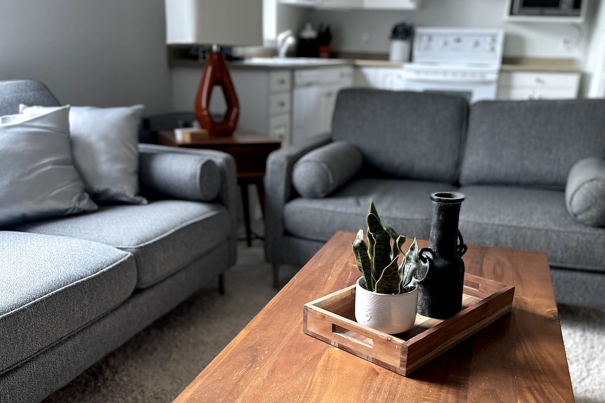 Tenemos licencia completa y asegurada. Hemos tenido mucho cuidado en la limpieza para garantizar tu seguridad, para sentirte en casa y relajarnos en tu espacio privado con vistas al lago. Entra en nuestra suite de un dormitorio de entrada de nivel luminoso. Tienes una cocina totalmente equipada, comedor y salas de estar con lavandería en la suite. Hay un televisor con óptica/cable. Puedes acceder a tu Netflix. Wifi gratuito. Café, té y agua embotellada de cortesía. Estacionamiento gratuito en el lugar. Se admiten mascotas.