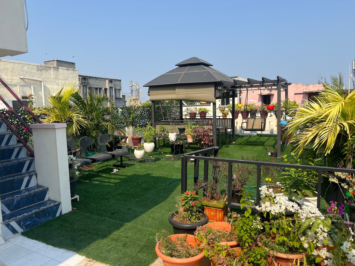 Ideal para estancias largas en el centro de Chennai. Alwarpet, Teynampet, T nagar. Perfecto para viajeros de negocios, citas en el consulado de EE. UU., visitas al Hospital Apollo y reubicaciones corporativas. Estudio penthouse con terraza privada con baño adjunto, aire acondicionado dividido, TV, Wi-Fi de alta velocidad, escritorio dedicado con silla ergonómica, nevera y microondas. Ideal para viajeros solos, profesionales y parejas. Ubicado en una zona residencial segura cerca de tiendas, cafeterías, restaurantes. Casa tranquila en el corazón de la ciudad.