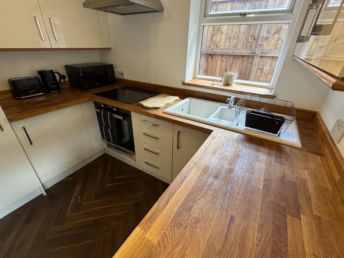 Acogedor refugio en Wythall cerca de la estación de tren con fácil acceso a Birmingham. Capacidad para 6 personas con estufa de leña, televisores inteligentes y una sensación de bienvenida. Volviendo a los campos donde puedes ver caballos o ciervos, además de un jardín compartido con pollos y un fogón. Estacionamiento todoterreno para 1 coche, estacionamiento gratuito en la calle y carga para vehículos eléctricos. La mezcla perfecta del encanto del campo y la comodidad de la ciudad. La casa de huéspedes está conectada a la casa principal, pero tiene su propia entrada y puerta.