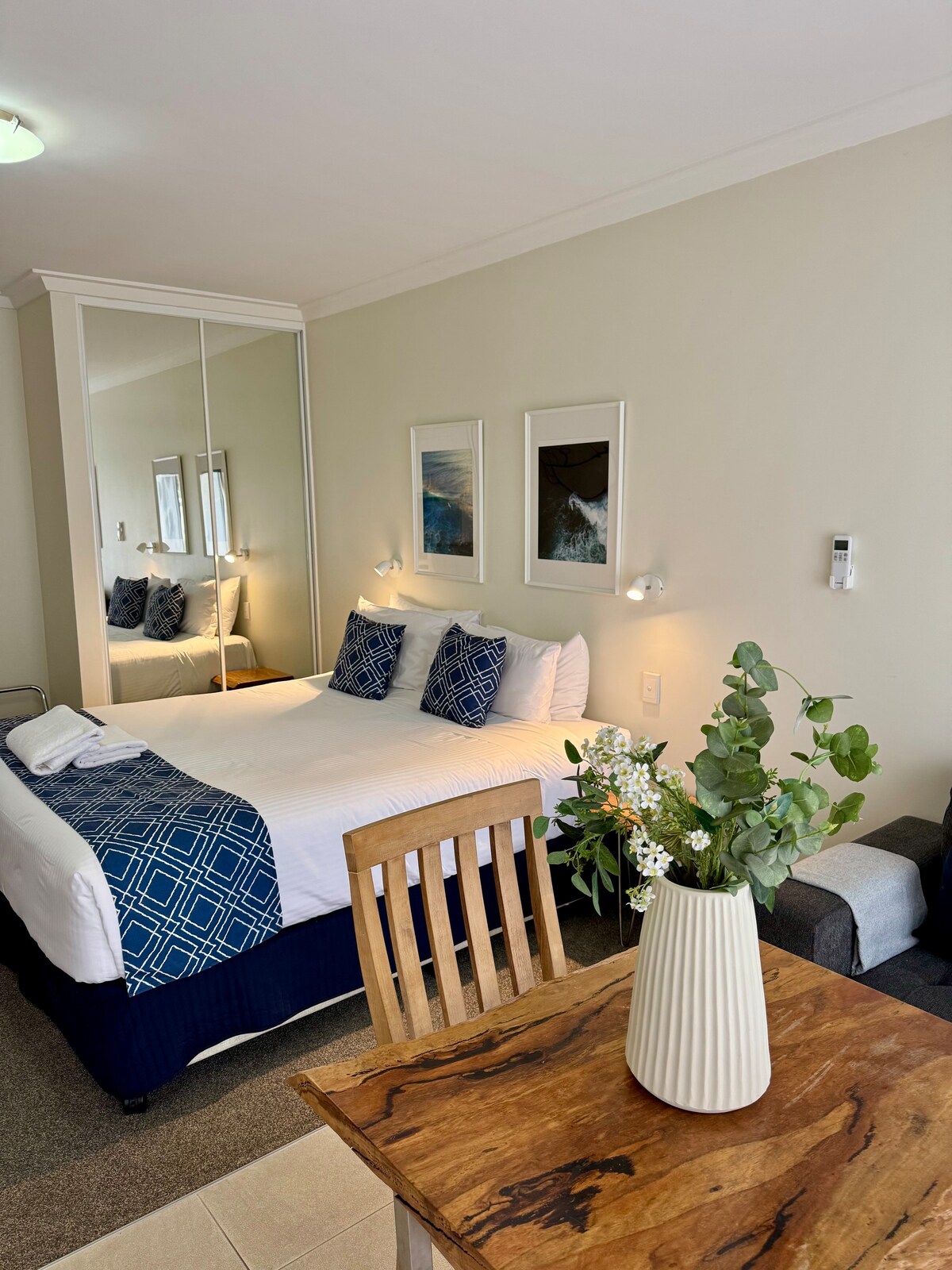 Situado en una zona tranquila de la ANTIGUA Quinns, el estudio es ligero y espacioso , con un montón de ventanas para atrapar brisas frescas del mar...deja las ventanas abiertas y algunas noches incluso puedes oler el océano. Incluso con persianas bloqueadas, es posible que el sol no te despierte, ¡pero los pájaros sí ! Tenemos un montón de Willy Wagtails y Pink & Grey Galahs. Desde la terraza o el sofá, disfruta de las gloriosas vistas sobre la Reserva Natural llena de hierbas. Ten en cuenta que no se aceptarán reservaciones que incluyan niños.
