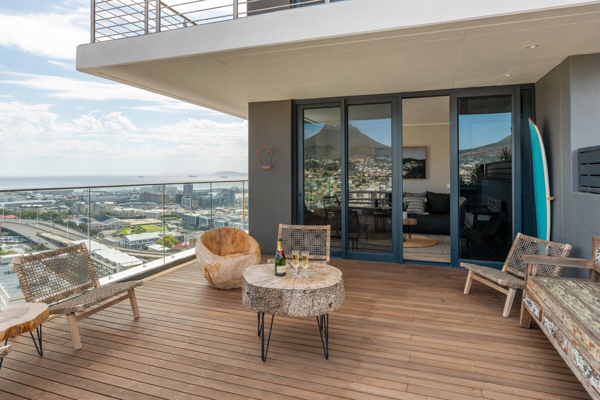 Contempla Ciudad del Cabo desde este exclusivo refugio en lo alto de la ciudad. Este tranquilo refugio es un lugar para relajarse, con muebles contemporáneos, ventanas corredizas del suelo al techo, salidas a la terraza, vistas panorámicas de la montaña de la Mesa y una piscina privada. Tienes un amplio espacio de dos niveles para disfrutar. Experimenta el bullicio urbano o la paz de la naturaleza, ambos a pocos minutos del apartamento.