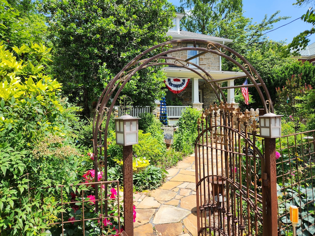 Ubicada en el tranquilo distrito histórico superior, esta romántica suite de invitados te ofrece todo el tercer piso (incluido el baño y la cocina americana). Disfruta de tu privacidad en una casa de piedra de estilo artesanal de 1920; a poca distancia a pie del Parque Nacional HF, los ríos Potomac y Shenandoah, el sendero del canal C&O, AT, la estación de tren Amtrak y Storer College. Bodegas del condado de Loudoun cerca. Lugar ideal para parejas, aventureros solitarios, escritores y artistas. Más fotos en Insta @rockhavenbnb