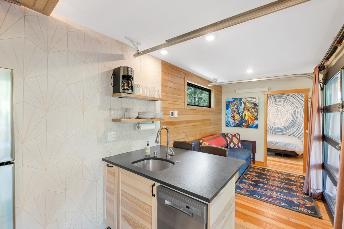 ¡Tómate tu tiempo en esta escapada única en un contenedor de envío transformado! Perfecto para 1-2 adultos después de un día de exploración. Cama tamaño queen (corre hacia los lados), cocina completa, baño de 3/4. Cerca del lado E de Echo Lake y The Jewel Basin, que cuenta con senderismo de clase mundial. A 15 minutos del centro de Bigfork, tiendas y restaurantes. Alquiler de kayaks en las instalaciones. La propiedad está junto a 2 alquileres de autocaravanas y comparte una plataforma de estacionamiento con el alojamiento acogedor de Airbnb. Solo se permite 1 perro.