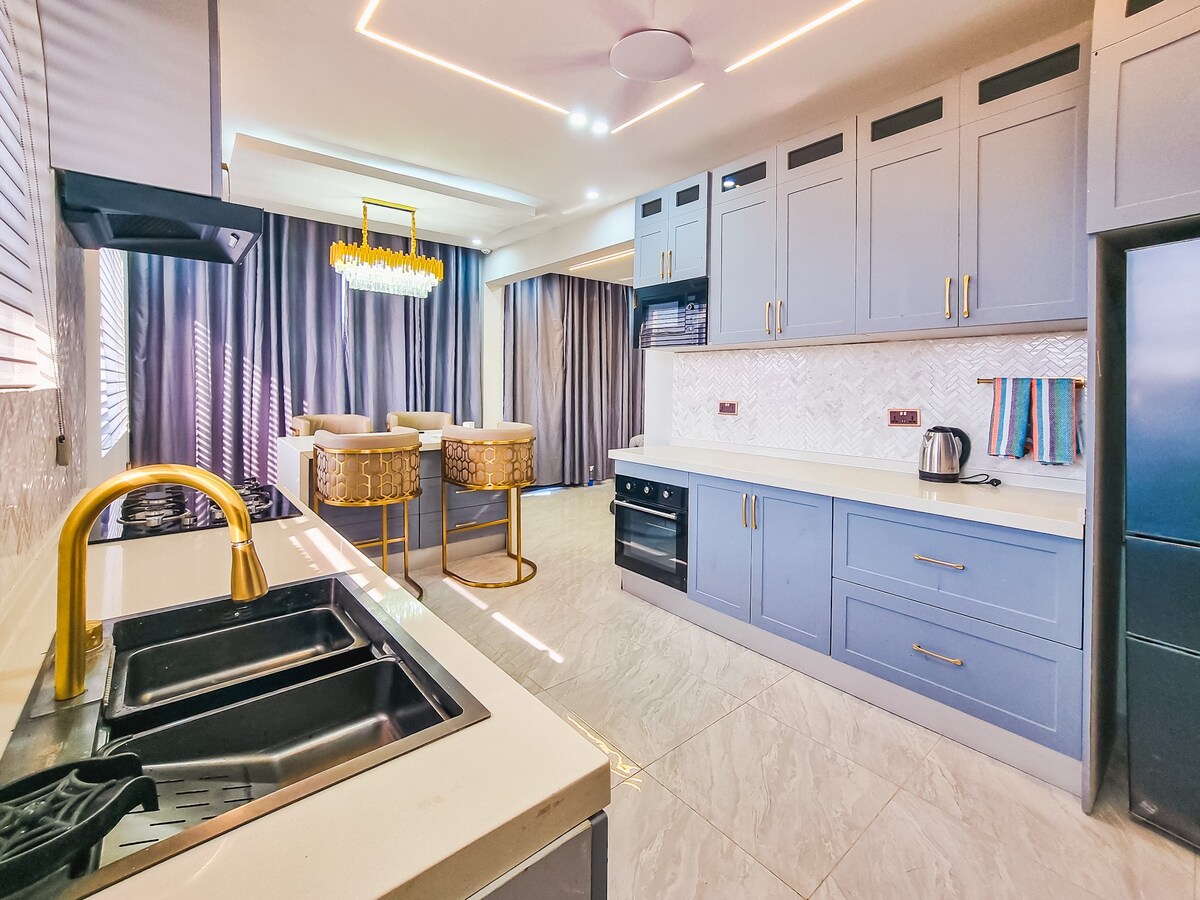This modern, full-service, family-friendly 2-bedroom apartment with 2.5 bathrooms offers a private rooftop swimming pool and an exclusive rooftop bar and grill for families or guests. Located in the heart of Takoradi’s Anaji area, the property features a fully-equipped kitchen and dining area, complete with an island perfect for cooking, working or entertaining. The living room is outfitted with a 75" Smart TV, Netflix, Wi-Fi, executive working desk, and a soundbar for your entertainment.