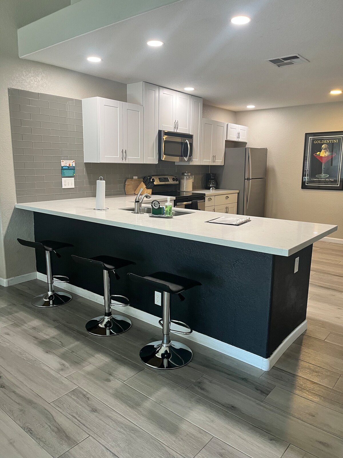 Welcome to the Handcrafted Home in the desert. There is a large outdoor area with a heated pool, bbq, and propane fire table. The heating of the pool is included in the cost of your stay from October-May. You will enjoy entertaining in the fully equipped chef’s kitchen with updated appliances and an air fryer in the oven. The comfy beds are memory foam and the bathrooms are both updated. Skip the game day/concert traffic and opt for an easy walk. We are located 0.8 miles from State Farm Stadium.