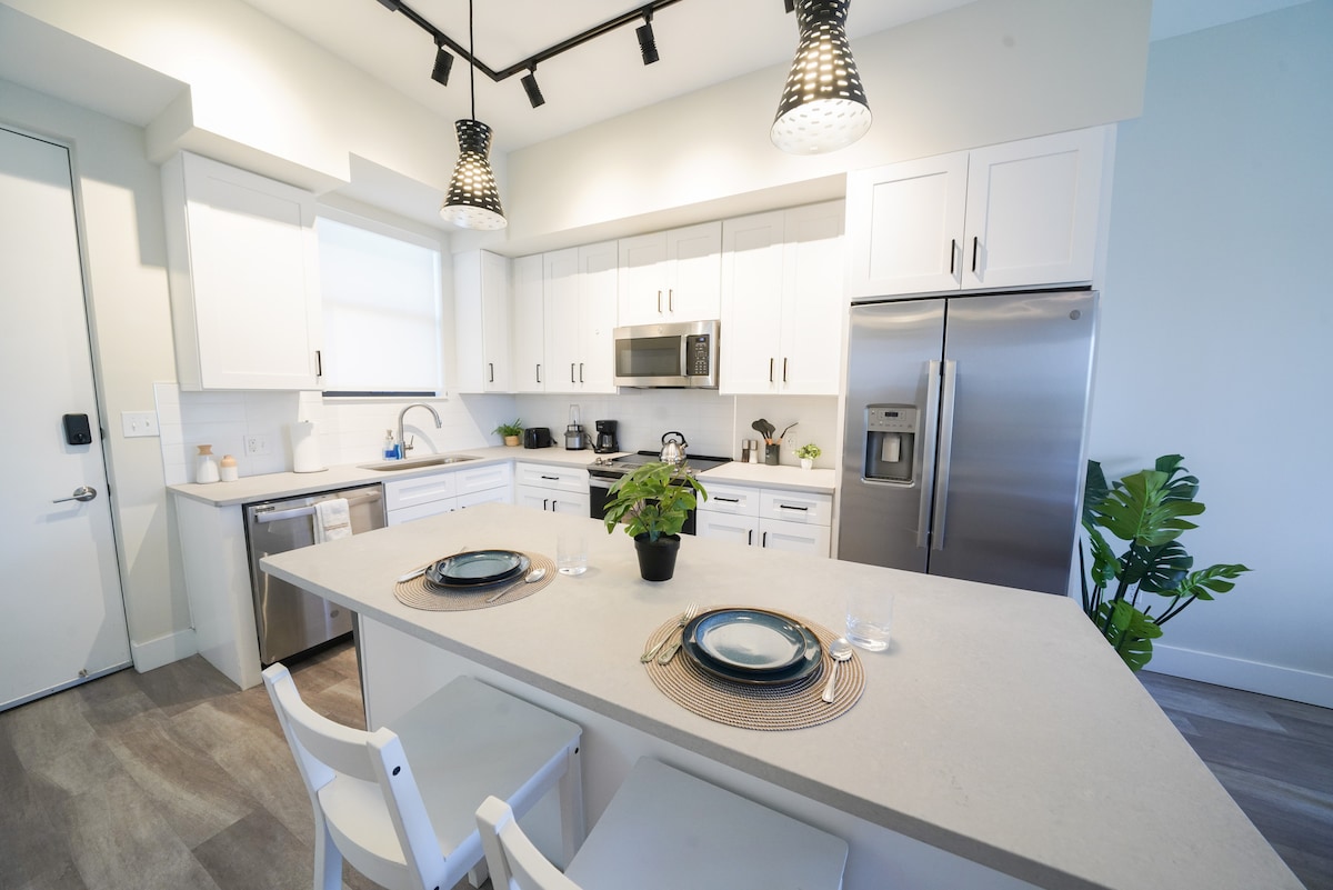 Bienvenido a nuestra casa ejecutiva independiente recién renovada, con muebles modernos, electrodomésticos de alta gama y lujosas comodidades. Relájate en la amplia sala de estar, cocina una comida gourmet en la cocina totalmente equipada o relájate en el gran patio con cómodos muebles de exterior. Te encantará la ducha de hidromasaje, la suave cama tamaño king y la ubicación tranquila. Disfruta de una entrada privada, dos plazas de aparcamiento dedicadas y un televisor inteligente de 65 pulgadas. Reserva ahora para disfrutar de una estancia cómoda y lujosa en West Palm Beach.